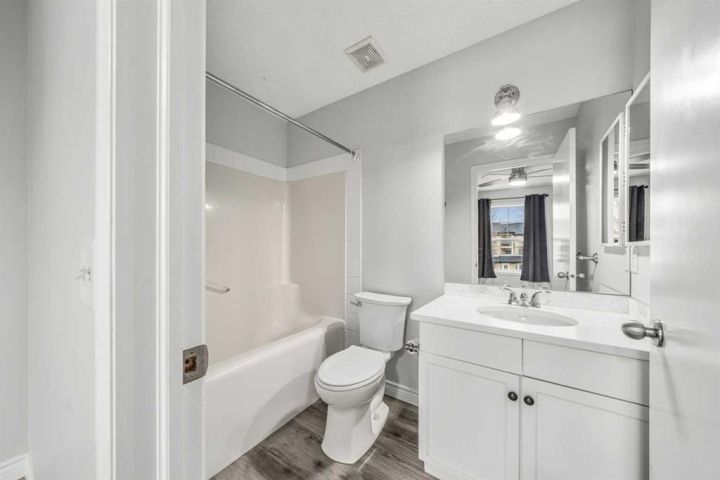 Discover this impeccably maintained, two-storey end-unit townhouse in the beautiful SE community of McKenzie Towne. With over 1,160 sq. ft. of well designed living space, this home blends comfort, style, and functionality—ideal for families, professionals, or anyone seeking a vibrant, connected community. Step into a bright, spacious front foyer flooded with natural light from the large west-facing window and a convenient front closet. The open-concept main floor features newer luxury vinyl plank flooring, a neutral colour palette, and an inviting living area that flows into the updated kitchen, complete with white painted cabinetry, quartz countertops, Silgranite sink, and a modern tile backsplash. The large central island provides extra storage and a perfect spot for casual dining. Enjoy your morning coffee or evening BBQ on the private balcony just off the breakfast nook. A convenient powder room and extra storage closets complete the main level. Upstairs, you’ll find a spacious primary suite with a walk-in closet and private 4-piece ensuite, plus a second oversized bedroom—also with its own 4-piece bathroom—perfect for guests, a roommate, or a nursery. The lower level offers direct access to the oversized single attached garage, newer washer and dryer, and ample storage space. Outside, the front patio, complete with a white picket fence, offers lake views and direct access to walking and bike paths. The sought after community of McKenzie Towne offers parks, schools, playgrounds, bike paths, and the shops and restaurants of High Street just minutes away. With low condo fees and easy access to Deerfoot and Stoney Trail, this move-in ready home delivers the perfect blend of lifestyle and convenience.