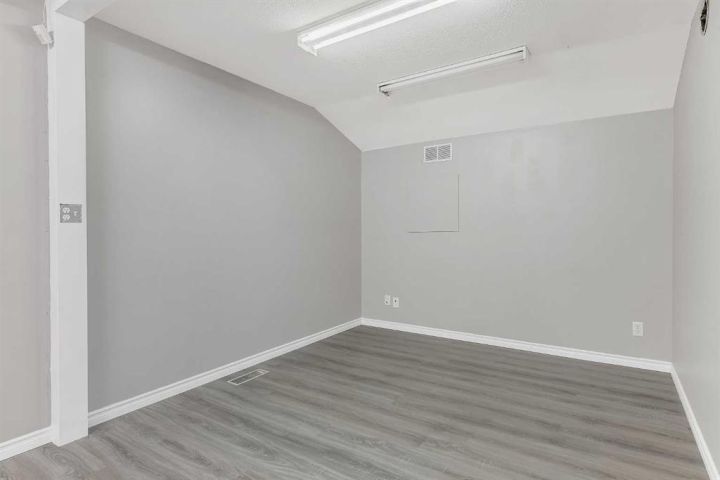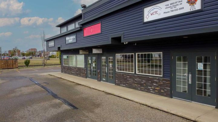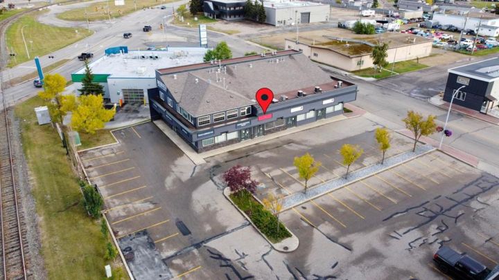 VACANT/IMMEDIATE POSSESSION available for this commercial office/retail condo unit located in "Station 99". Prime location within the thriving business community along 97 Avenue in the City Center with easy access and fantastic exposure. The main floor offers 986 sq ft of bright, open space, with convenient slat wall panelling and a separate back room area with a washroom and handy janitor floor sink. The second level upstairs, features new flooring, adding 580 sq ft, including an open area, office, washer/dryer hookup, and utility room. This top space can be leased to a tenant to help offset your mortgage. Both floors have been freshly painted and fluorescent lighting is provided. The exterior has been updated, with professionally maintained grounds and ample client parking. This is your opportunity to own commercial real estate in a premium location. Condo fees are $879.07/month and cover property management, snow removal, yard maintenance, garbage, and exterior decor. Opportunity awaits! Reach out to your Commercial Realtor© for further details or to schedule a viewing. ALSO FOR LEASE AT MLS A2268601.