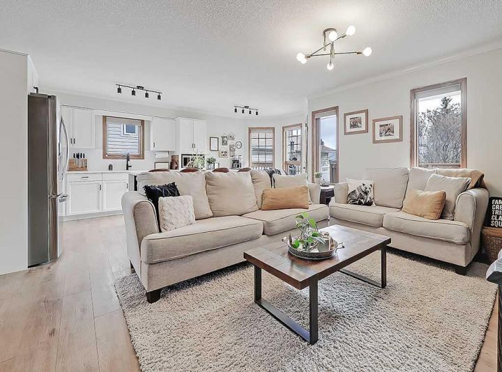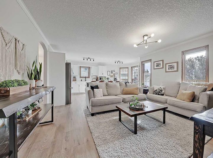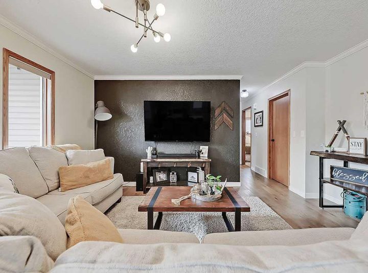 Charming Bungalow on a Quiet Street in Southeast High River. Welcome to this wonderful 4-bedroom home tucked away on a peaceful street located near schools, shopping and walking trails. This beautifully maintained home offers comfort, style, and thoughtful updates throughout. The main floor features a bright and inviting living room with a cozy gas fireplace and an adjacent dining area—perfect for family gatherings. The updated kitchen boasts new countertops, modern vinyl plank flooring, refreshed cabinetry, and a large island that provides ample storage and workspace. The adjoining family room is spacious and seamlessly connected to the kitchen, creating an ideal layout for everyday living and entertaining. The primary bedroom includes a walk-in closet and a renovated 3-piece ensuite, while a second bedroom and convenient main-floor laundry complete the level. Downstairs, the fully finished basement offers a large rec room with a second gas fireplace, two additional bedrooms, and another 3-piece bathroom—making it an ideal space for guests, teens, or extended family. Outside, you’ll enjoy a sunny south-facing deck, perfect for summer BBQs, as well as RV parking for your convenience. Don’t miss your chance to view this fantastic home—call today to schedule your private showing!