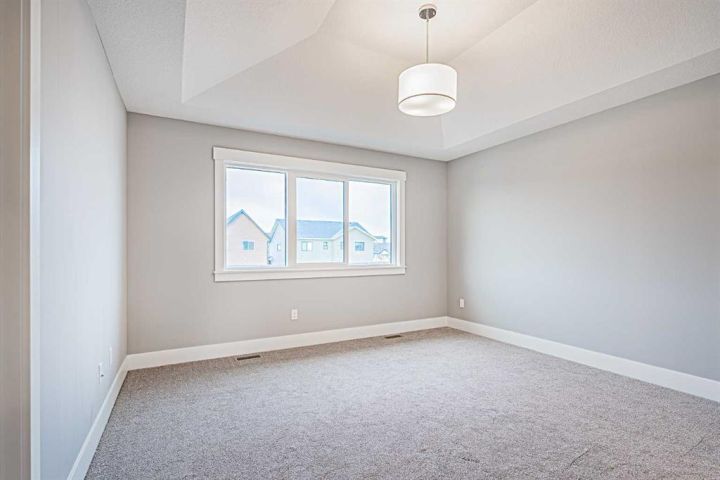 Brand-New Luxury Awaits in Prestigious Coopers Crossing! Seize an amazing opportunity to own a truly custom, NEW, Never Occupied home in the highly sought-after community of Coopers Crossing. Custom-built by the esteemed 2019, 2020, & 2021 BUILD Award Winner, Harder Homes, this stunning 2-storey residence offers 1,821 Sq.Ft. of developed luxury and over $40,000 in high-end upgrades. ?The open-concept main floor welcomes you with a huge, inviting foyer that leads into a spacious living room featuring a cozy fireplace with a built-in mantel. The custom gourmet kitchen is a chef's dream, boasting white, ceiling-height cabinets, a contrast-color oversized center island, premium quartz countertops throughout, and high-end stainless-steel appliances, including a built-in microwave, gas range, and range hood. A spacious dining nook and a great-sized office complete this level, all enhanced by 9-foot ceilings and 8-foot doors. ?Upstairs, the expansive primary bedroom retreat is a sanctuary with a vaulted ceiling and a deluxe 5-piece ensuite featuring a dual sink vanity, deep tub, and separate shower. Two additional well-sized bedrooms and a second 5-piece bathroom with double sinks provide ample space. Custom built-in closets and an upgraded lighting package are found throughout the home. ?The undeveloped basement offers just over 800 Sq.Ft. of potential, featuring 9-foot ceilings, a separate side entrance, and a bathroom rough-in, ready for you to finish to your exact needs. Key Features Include: ?Unique outside elevation, sloped roof lines & color scheme. ?Huge windows for abundant natural light. ?Premium quartz countertops everywhere. ?Walk-in distance to Coopers Plaza Promenade, green space trails, parks, and schools. ?Don't miss this chance for immediate, brand-new luxury living. Call to book your private viewing today!