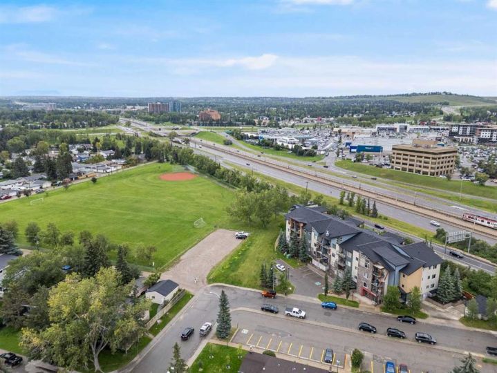Welcome to Varsity Landing, a modern building located in the tranquil and sought-after community of Varsity Acres. This priced to sell unit boasts a range of features, including heated, titled underground parking with secure bike storage, all while overlooking the beautiful Varsity Acres park. Inside, you'll find a stylish interior adorned with trendy earth tones, dark cabinetry, and elegant granite countertops, complemented by a convenient sit-up breakfast bar and sleek black appliances. The unit also includes in-suite laundry and a versatile office or den area that could be used as a second bedroom! The bright and open living space seamlessly connects to a spacious southwest-facing balcony, perfect for enjoying serene views of the green area. Situated close to essential amenities such as the University of Calgary, Market Mall, C-train, Foothills Hospital, and Northland Mall, this location offers both convenience and comfort. Book a showing today!