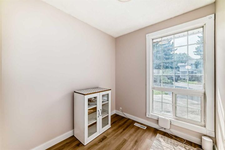 Welcome to this beautifully renovated semi-detached two-story home located on a quiet cul-de-sac in the highly sought-after neighborhood of Pineridge. This house offers 3 bedrooms plus a main floor den and 1.5 full bathrooms PLUS finished one-bedroom basement with bathroom and kitchen (Ideal for renting). New flooring (2022) and fresh paint (2025) throughout the house. The house has a nice and bright floor plan with upgraded bathrooms and kitchen. A renovated kitchen with quartz countertops, new cabinets and new appliances (2025). The home has gone through major updates over the past years including SIDING, ROOF, EAVES, FASCIA , WINDOWS, FURNACE and WATER TANK (2022). The house has a huge backyard and is within walking distance to Leisure center, shopping, public transit and all level of schools.