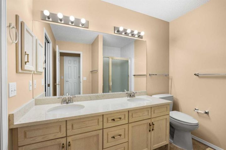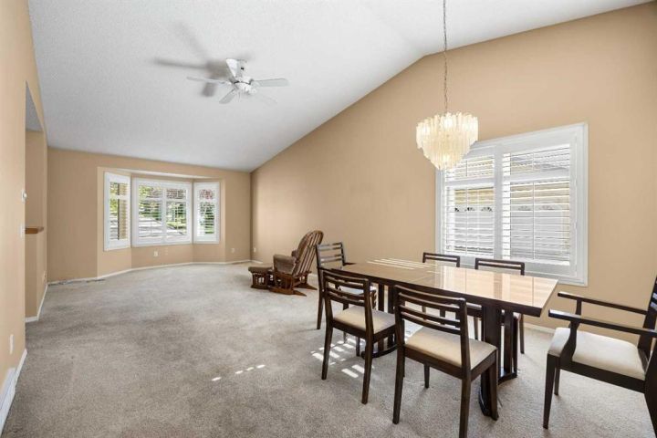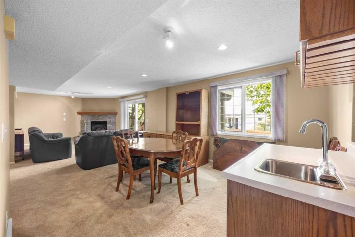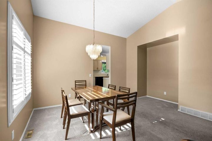 Located in the sought-after community of Edgemont, this end unit townhome bungalow offers over 2,400 sq.ft. of total living space in a quiet and beautifully maintained complex. Residents enjoy access to a private clubhouse, where social activities such as card games, reading groups, game nights, and potlucks create a true sense of community. The clubhouse is fully equipped with a kitchen, lounge, pool table, darts, and shuffleboard—perfect for gathering with neighbours and friends. Step inside to find the open Main Floor with soaring 11’5” vaulted ceilings that enhance the spacious feel of the combined Living and Dining Room. The Kitchen features granite countertops and is seamlessly connected to a cozy Breakfast Nook, which opens onto the oversized rear deck (21' x 9'6") with a retractable awning —ideal for morning coffee or summer dinners with a view. The Primary Bedroom offers a 4-piece Ensuite with double vanity and a walk-in closet. A great-sized Den, Laundry Room, and insulated Double Attached Garage complete the main level. The fully finished Walkout Basement provides additional room to relax or entertain, featuring a large Family Room with gas fireplace and wet bar, a second Bedroom with generous walk-in closet, a 4-piece Bath, and a spacious Workshop area—perfect for woodworking, crafting, or hobbies. Step outside to the lower covered Patio, complete with a gas BBQ hookup, and enjoy the mature, peaceful surroundings. Tucked within a quiet cul-de-sac, Dreamview Village is a well-run complex with an active resident community. It’s ideally located close to walking paths, Nose Hill Park, local cafés and restaurants, and just minutes from the shops and services at Crowfoot Centre. This is a rare opportunity to enjoy low-maintenance, community-oriented living in one of NW Calgary’s most desirable neighbourhoods.