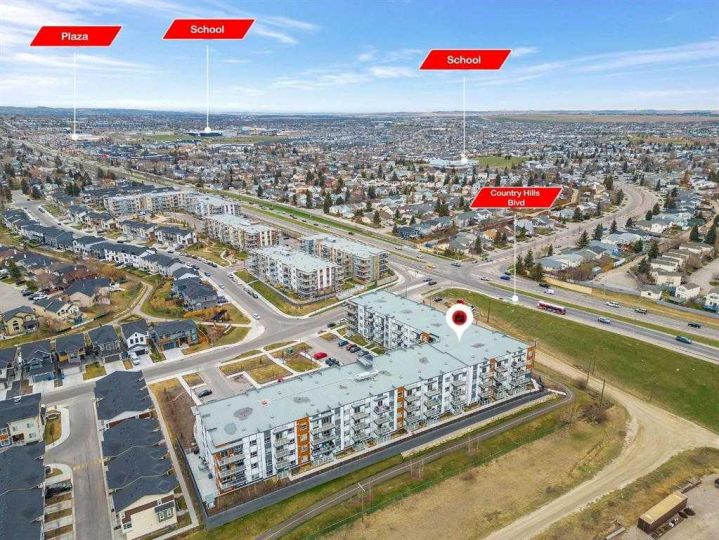 Modern, Private and Spacious (Builder measurement is 904 sqft) | Move-in Ready Welcome to this brand-new listing in the desirable community of Harvest Hills, Calgary! This spacious 2-bedroom, 2-bathroom apartment offers a perfect blend of comfort and modern style, featuring 9’ ceilings, LVP flooring, Low-E triple-glazed windows, electric baseboard heating, a BBQ gas line on the balcony, titled underground parking, and much more. As you enter, you’ll immediately appreciate the open-concept layout showcasing a stunning kitchenwith quartz countertops, stainless steel appliances, ample cabinetry, an elegant backsplash, a corner pantry, and a central breakfast island. The kitchen flows seamlessly into the dining area and a bright living room overlooking the green space. Both bedrooms are generously sized, including a primary suite with a walk-in closet and a private ensuite featuring a standing shower. The second bedroom is conveniently located next to the main full bathroom. You’ll also enjoy the convenience of in-unit laundry with extra storage space. Step out onto your large, private balcony — the perfect spot for morning coffee or evening relaxation. The unit also includes AC rough-in, offering peace of mind for future installation. Located in a vibrant community filled with amenities, you’ll have access to tennis courts, nearby schools, parks, shopping at Coventry Hills Centre, VIVO Recreation Centre, grocery stores, restaurants, cafés, Home Depot, Superstore, Cineplex, TNT Supermarket, and the North Pointe Bus Terminal. All this and just under 10 minutes to Calgary International Airport and minutes from Deerfoot and Stoney Trail. Don’t miss your chance to call this beautiful apartment home — book your showing today and be sure to check out the virtual tour!