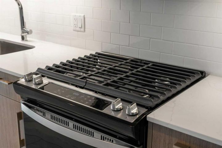 Dishwasher, Gas Oven, Microwave Hood Fan, Refrigerator, Washer/Dryer Stacked