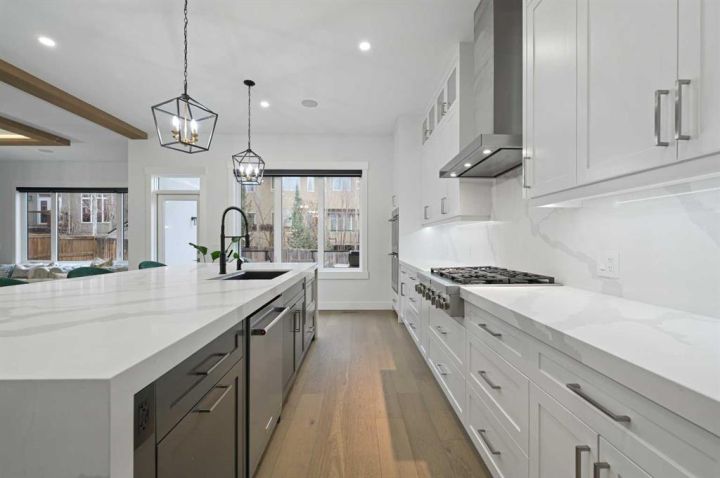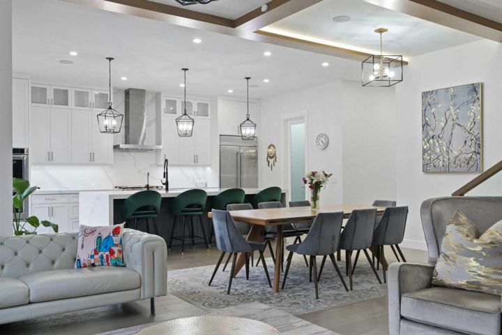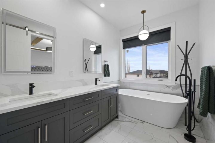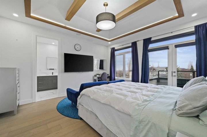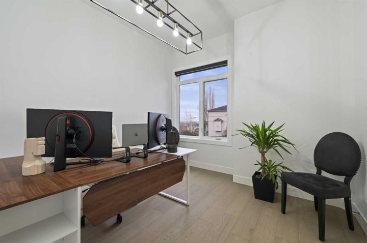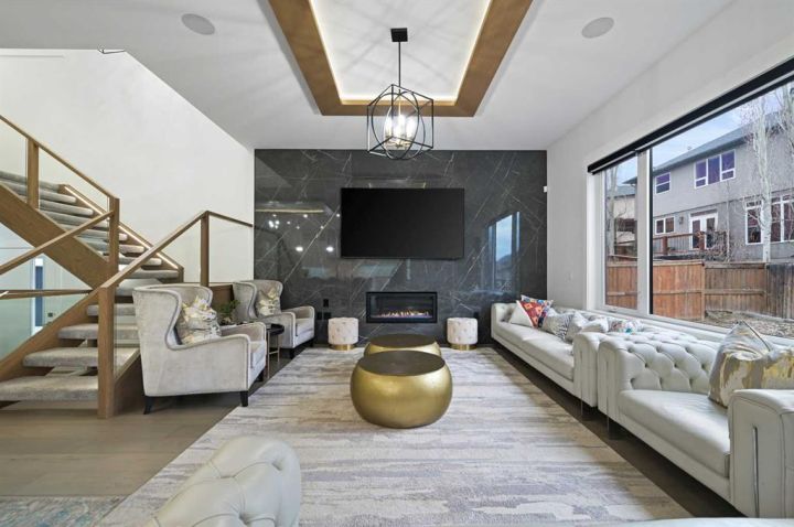 Welcome to 7250 Elkton Drive SW, a stunning estate home offering over 4,500 SQFT of beautifully developed living space in the prestigious community of Springbank Hill. From the moment you step inside, you'll be captivated by the home’s stature, warmth & elegant design, where a sprawling yet intimate floor plan perfectly balances grand entertaining and cozy family living. The main floor features a bright living room, spacious home office or guest suite. The heart of the home is the magazine-worthy chef’s kitchen, boasting a dramatic oversized quartz apron island, high-end appliances, a generous walk-in pantry, and an open layout that flows seamlessly into the dining and living areas, where guests can gather around the stunning floor-to-ceiling tiled fireplace. Step outside to the expansive rear deck and let the kids play under the shade of a majestic historic tree. Upstairs, the luxurious Primary Suite offers a private retreat with its own sitting area and access to a front patio with city views, plus a spa-like ensuite featuring a standalone glass shower, tear-drop soaker tub, and a fashion-lover’s dream walk-in closet. The second bedroom enjoys its own private ensuite, while the third and fourth bedrooms share a convenient Jack-and-Jill bathroom, with upper laundry completing the level. The fully finished basement extends the living space with a sleek wet bar, custom built-ins, and two additional bedrooms, perfect for extended family or guests. A triple garage with epoxy floors, an EV charger, and private entrances from both the garage and side patio add incredible convenience. With central A/C and situated minutes from top schools, shopping, fine dining, and recreation, this home is the perfect blend of luxury, functionality and timeless charm - your dream oasis awaits!