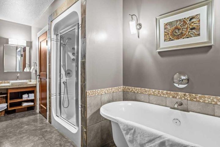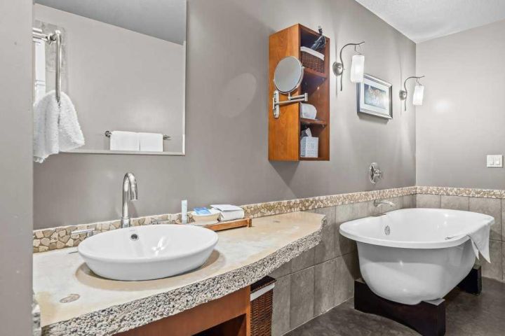 Experience luxury mountain living in this stunning 2-bedroom, 2-bathroom penthouse at the highly sought-after Solara Resort in beautiful Canmore, Alberta. Perfect as a short-term rental investment or a personal mountain retreat, this top-floor residence offers breathtaking panoramic mountain views from every room and an expansive private patio—ideal for entertaining or relaxing after a day of adventure. Inside, you’ll find a unique and spacious open-concept layout with high-end finishes, modern furnishings, and abundant natural light. Enjoy access to premium resort amenities including a fitness center, spa, hot tub, and underground parking. Just minutes from downtown Canmore’s vibrant shops, dining, and world-class trails, this exceptional property combines the best of comfort, convenience, and alpine sophistication. Discover the perfect blend of investment potential and mountain lifestyle in one of Canmore’s premier destinations. This unit also comes with 2 titled parking stalls - an added bonus! NOTE: The list price is subject to GST; consult with a tax professional for advice on GST deferral options.
