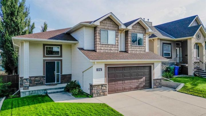 Welcome to 74 Rivermont Crescent W — a stunning, designed and custom-built bi-level tucked away on a quiet street in West Lethbridge! With 5 bedrooms plus an office, this walk-out home offers all the space your family needs and more. Overlooking peaceful green space, it’s only a couple of minutes walking up the crescent to a park featuring a stocked fishing pond and deck, a premium playground, and scenic nature trails. Coulee trails and an off-leash dog park are within walking distance too! Step inside to a bright, open-concept main floor featuring quartz countertops, updated flooring, skylight, and oversized windows that flood the space with natural light. The spacious primary suite comes complete with a walk-in closet and a 4-piece ensuite with double sinks and a relaxing jetted tub. The fully finished walk-out basement is filled with natural light and includes extra bedrooms, a full bathroom, and an office that could serve as a 6th bedroom. A focal gas fireplace and a ready hook-up for a projector make it the perfect spot for cozy family movie nights. Outside, enjoy a large furnished patio with an outdoor propane fireplace and a ready-to-use hot tub that all stay with the home. The fenced, professionally landscaped backyard showcases mature trees, a perennial garden, and underground sprinklers. Add in two beautiful fountains, central A/C, and a double attached garage, and this home truly has it all! Don’t miss your chance to own this incredible property in one of West Lethbridge’s most desirable neighborhoods!