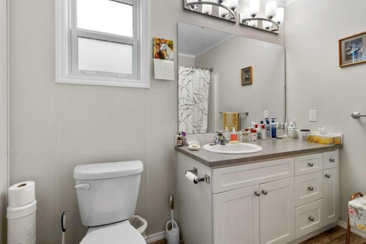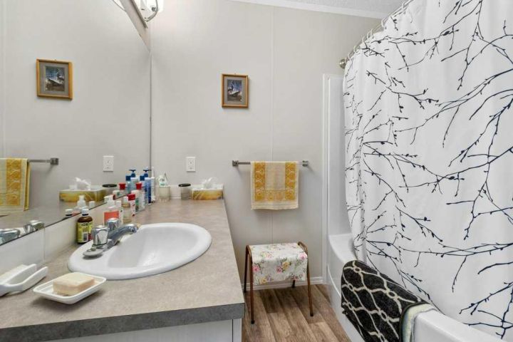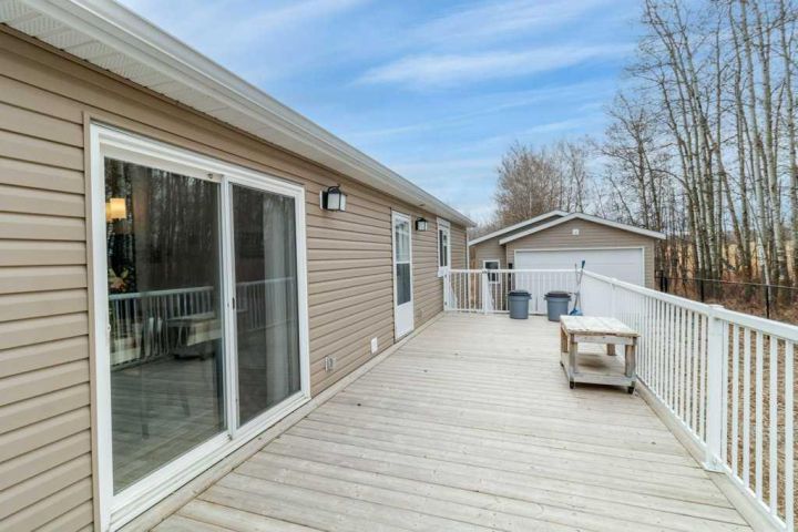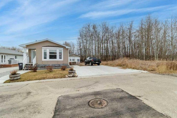 Located in the vibrant town of Sylvan Lake, this beautifully maintained home offers the perfect blend of comfort, convenience, and an active lifestyle. Enjoy all that Sylvan Lake has to offer—boating, golfing, nearby schools, shopping, and year-round recreation. Nestled in the desirable Lighthouse Point subdivision, this property sits on a spacious 50x130 ft corner lot at the end of a quiet cul-de-sac, backing onto a peaceful greenspace. The yard is fully landscaped and features a parking pad for two vehicles, an 8x12 storage shed, and a detached 29x19 heated garage—perfect for vehicles, hobbies, or extra storage. This bright and inviting 1,243 sq ft manufactured home is exceptionally well cared for, featuring vaulted ceilings and an abundance of windows that fill the space with natural light and durable linoleum flooring throughout for easy maintenance. The open-concept kitchen is designed for both function and style, complete with white cabinetry, a large island, breakfast bar, and a walk-in pantry. Appliances include a refrigerator, stove, dishwasher, microwave, reverse osmosis system, washer, and dryer. Sliding doors off the dining area lead to a sunny deck—perfect for morning coffee or evening relaxation. The spacious living room provides a comfortable gathering space, while the home’s two bedrooms include a generous primary suite with a four-piece ensuite and large walk-in closet. A second four-piece bath, convenient laundry area, and a side entrance opening to a 10x30 deck complete the layout. $101 Monthly fees include road maintenance, professional management, and contributions to the reserve fund, ensuring a well-maintained and worry-free community.