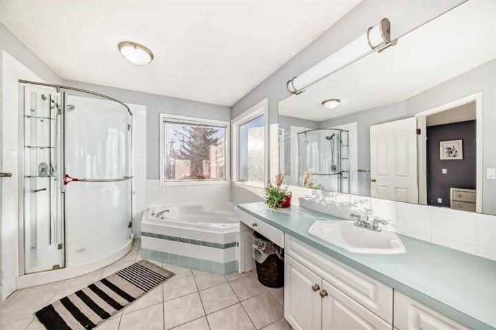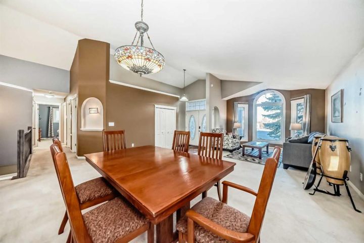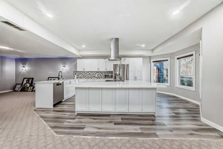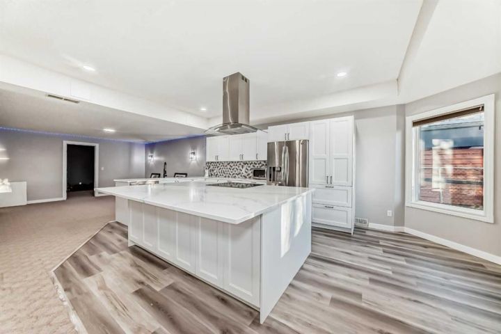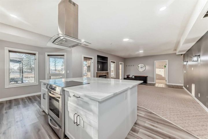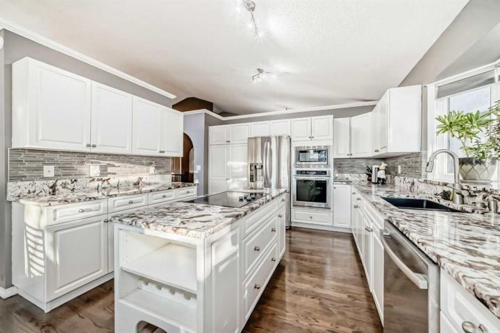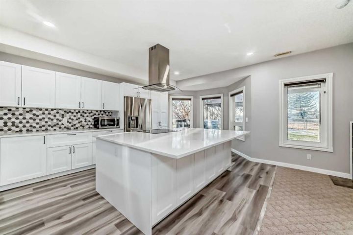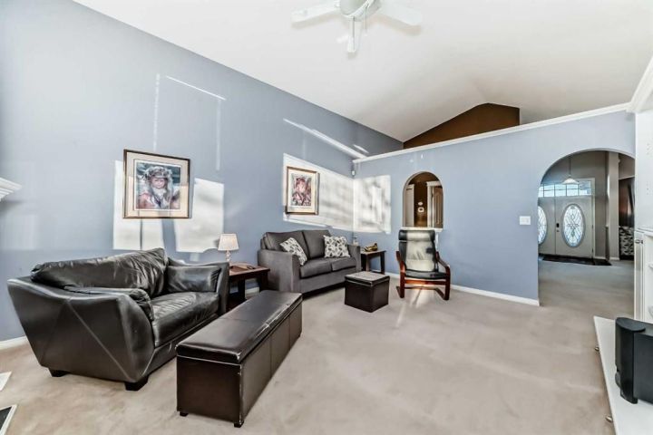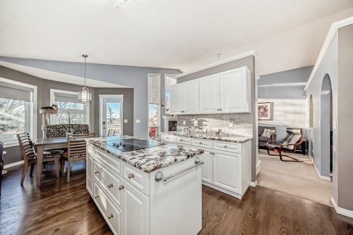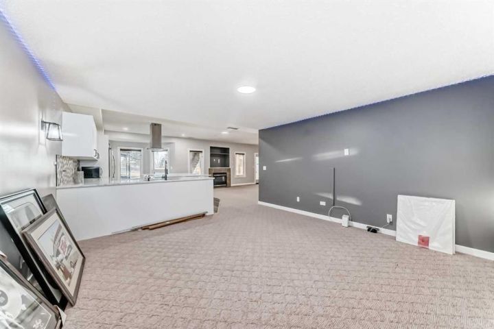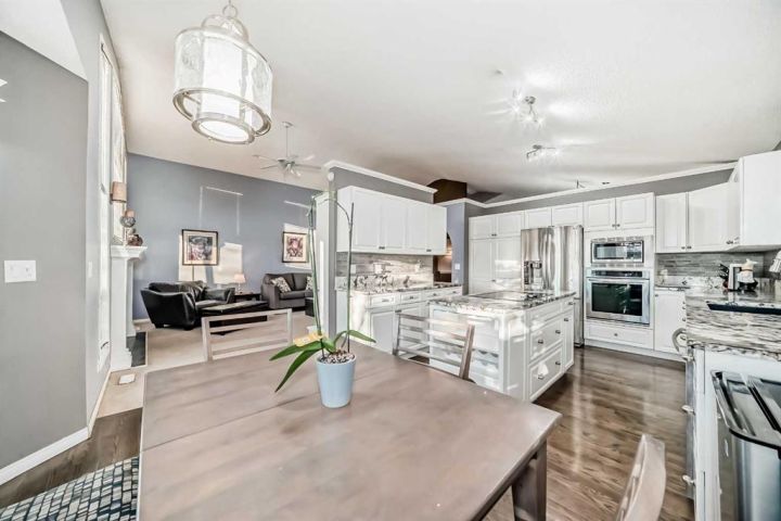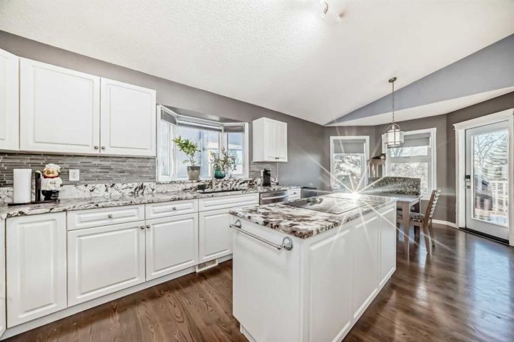 Welcome to 256 Lakeside Greens Drive! Golf course living with sunset views! Nestled in the prestigious Lakeside Greens Golf Course community of Chestermere, this beautiful bungalow offers a sunny west-facing backyard that backs directly onto the fourth hole, the perfect spot to enjoy breathtaking sunsets and mountain views. Inside, the main floor features a welcoming living and dining room combination, ideal for entertaining. The large kitchen boasts an island with granite countertops and stainless steel appliances, along with a built in oven and microwave, a chef’s dream. Relax in the cozy family room with a gas fireplace and from the kitchen nook area, step out to the large deck and enjoy the serene golf course setting. There are two spacious bedrooms on the main floor. The primary suite will fit your king bed with plenty of room for all of your furnishings. The ensuite features a separate shower and tub! The second bedroom is generous in size, perfect for guests or family as it comes complete with a 'Murphy' Bed. There is a full piece bath and convenient main floor laundry. The fully developed walk-out basement includes an illegal suite, offering additional living space and flexibility for extended family or guests. Here you will find a large rec room, along with two additional bedrooms and a full bath. The garage is oversized, measuring 24'.5" x 24'3".There is an energy efficient 'On Demand' Hot water system, and the majority of the windows have been replaced within the last few years. From the garage, there is a separate entrance leading into the basement. This home combines comfort, elegance, and unbeatable views, all in a highly 'sought' after golf course location!