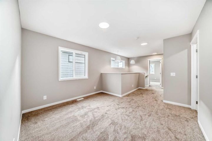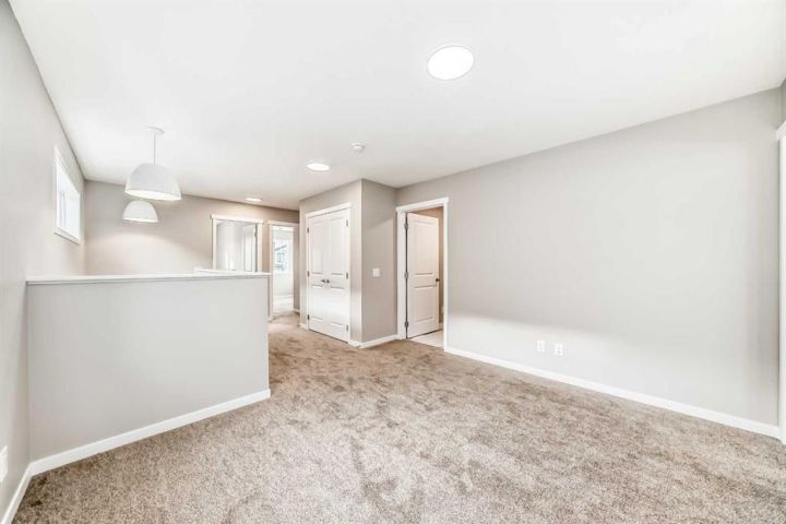 Welcome to this brand-new “Rayn” in Mahogany—a home that blends stylish family living with future flexibility. A separate side entrance offers the option for a private lower-level development or suite down the road (A secondary suite would be subject to approval and permitting by the city/municipality), while the main floor is designed for everyday ease with warm, natural luxury vinyl plank and clean, modern finishes throughout. At the heart of the home, the central kitchen shines with timeless white cabinetry raised to the bulkhead, bright white quartz countertops, and a white marble-style backsplash that wraps the stand-alone chimney hood fan for a seamless, upscale look. Stainless steel appliances and an oversized island make meal prep and casual entertaining effortless. The dining area sits perfectly between kitchen and living—roomy enough for an extended table—while the rear living room enjoys floor-to-ceiling windows and a smart back entry with a 2-piece bath. Just off the kitchen, a versatile flex room adapts to your life (home office, play space, fitness corner), and a raised homework/tech nook overlooks the main floor—organized, functional, and surprisingly fun. Upstairs, a cozy bonus room anchors the level for movie nights or quiet reading. The primary retreat is tucked at the back with an oversized window, a generous walk-in closet, and a chic 4-piece ensuite featuring dual sinks and a full-size shower—finishes you’d expect in a much larger home. Two additional bedrooms are well-proportioned, and the upstairs laundry and linen storage keep day-to-day living simple and tidy. Live the four-season lake lifestyle Mahogany is known for. Centered around Calgary’s largest freshwater lake and a 21-acre beachfront, the community offers private resident beaches, swimming, skating, and year-round events. Stroll the scenic wetlands and extensive pathway network, or head to the Urban Village for coffee shops, restaurants, services, and everyday conveniences. Families appreciate nearby schools and playgrounds; commuters value quick access to Stoney Trail, Deerfoot Trail, and the Seton District’s amenities (South Health Campus, shops, dining, and recreation). Mahogany pairs resort-style living with real-world convenience—making home feel like a getaway, every day.