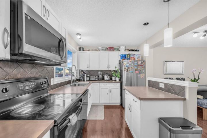 Welcome to 207 Elgin Meadows Gardens SE—a beautifully maintained home with standout curb appeal and thoughtfully updated features. From the moment you arrive, the low-maintenance front yard makes an impression with its stone fencing, natural rock detailing, interlocking stone pathway, and mature landscaping. This is curb appeal at its finest. Inside, the home offers a bright, modern layout with gleaming hardwood floors and an open-concept design. The living room is filled with natural light and centered around a stylish tiled fireplace, creating the perfect space to relax or entertain. The dining area is spacious and flows effortlessly into the kitchen, allowing you to stay connected with guests while preparing meals. A functional mudroom with built-ins and a freshly updated 2-piece bathroom complete the main floor. The upper level features a generous primary bedroom and two additional bedrooms, ideal for kids, guests, or a dedicated office. A well-appointed 4-piece bathroom serves the upper level. The fully finished lower level expands your living space with a large rec room featuring modern laminate flooring. Rough-in plumbing is ready for a future bathroom if desired. Step outside to a large, low-maintenance deck and a fully fenced backyard with plenty of room to customize—or even add a garage. Located steps from parks, pathways, amenities, transit, schools, and major roadways, this home blends comfort with convenience in one of Elgin’s most desirable pockets. Contact your favourite Realtor to schedule your private showing today.