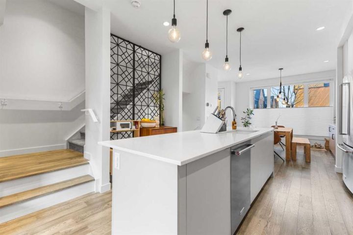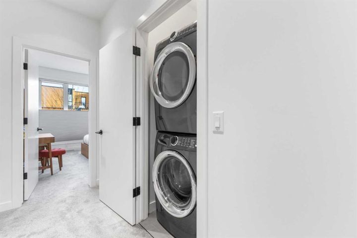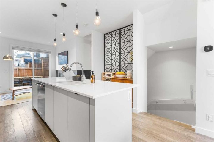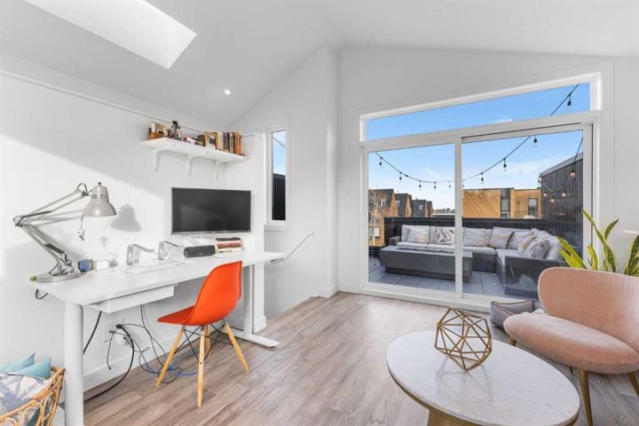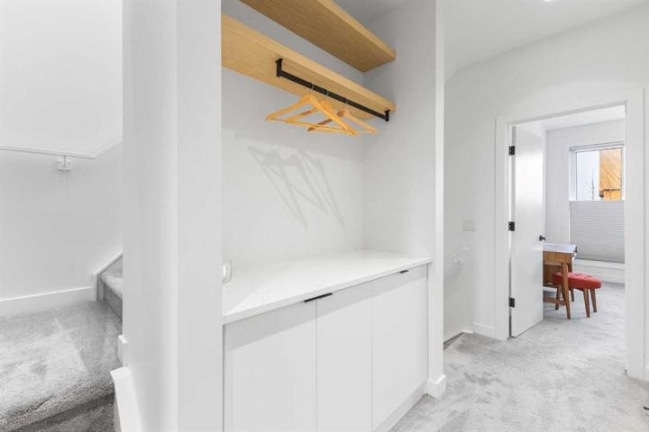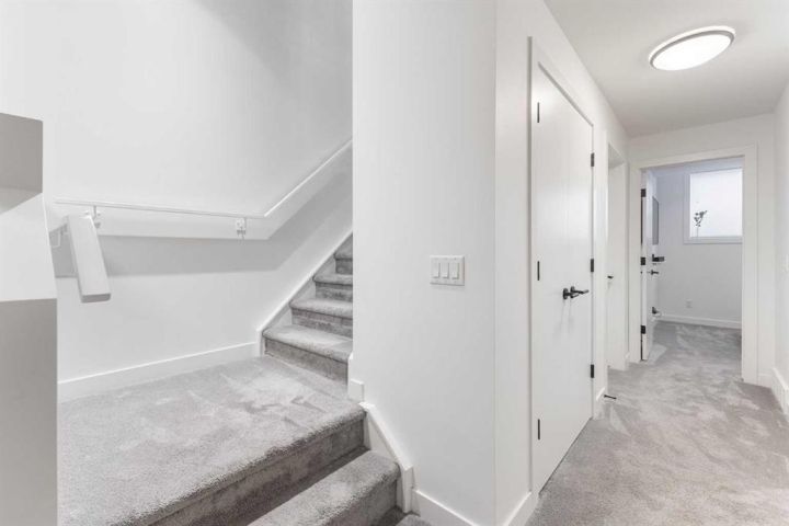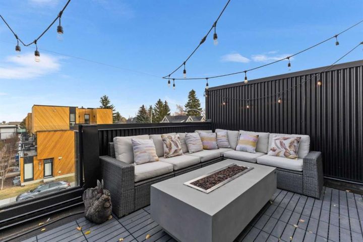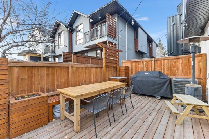Welcome to this stunning three storey townhome in the heart of Altadore, offering over 2200 sq ft of beautifully designed living space with thoughtful upgrades and custom finishes throughout. Built in 2018, this residence combines modern style with functional design, creating a home that is as practical as it is elegant. The main floor showcases an open concept anchored by a chef’s kitchen with quartz countertops, a large island/eating bar, plenty of storage space and stainless steel appliances. Custom built cabinets with quartz counter tops and two floating wall to wall shelves add both storage and style to the adjoining dining area, while the living room with gas fireplace completes the perfect setting for entertaining. Upstairs, you’ll find two spacious bedrooms, including a primary retreat with a walk in closet and spa inspired ensuite featuring a fully tiled shower. A second full bathroom, also fully tiled, serves the additional bedroom. The upper level laundry station is a true standout: custom cabinetry with quartz countertop, two pull out hampers, floating wall to wall shelves, and a convenient hanging bar are thoughtfully positioned directly across from the stacked washer and dryer. The third floor loft is a versatile bonus space, complete with a wet bar and hardwood flooring, ideal for a media room, home office, or lounge. From here, step out and enjoy the views from the private rooftop patio. The fully finished basement offers a spacious recreation room, third bedroom, and a full bathroom with the comfort of heated floors. Outside, enjoy the back deck, enhanced with custom built furnishings that elevate everyday living. Cleverly designed planters, finished in stained wood, and at varying heights provide the perfect backdrop for creeping vines, clematis, or even an herb garden, while a custom prep station with natural stone top, storage, and privacy wall makes summer barbecues effortless. Other notable features include central air conditioning for year-round comfort and the convenience of private direct access to a single detached garage just steps away from back door. Located in one of Calgary’s most desirable inner city communities, this home is steps from parks, schools, shopping, and vibrant Marda Loop amenities, with quick access to downtown. This Altadore townhome is the perfect blend of modern design, custom craftsmanship, and urban convenience—ready to welcome its next owner.