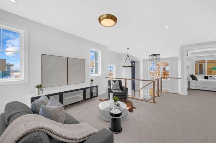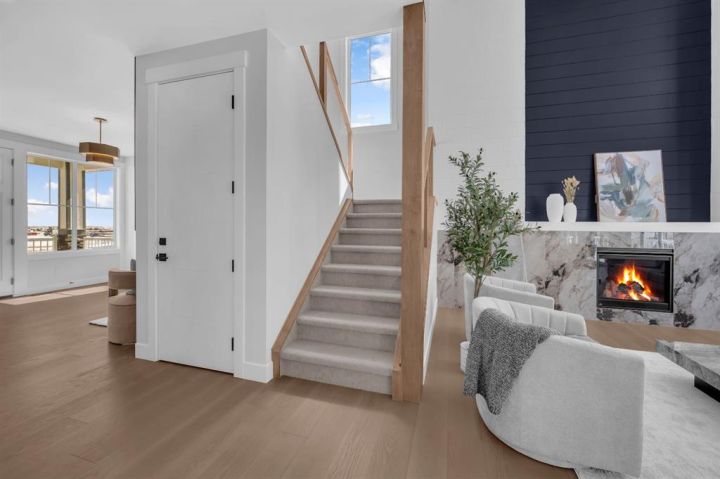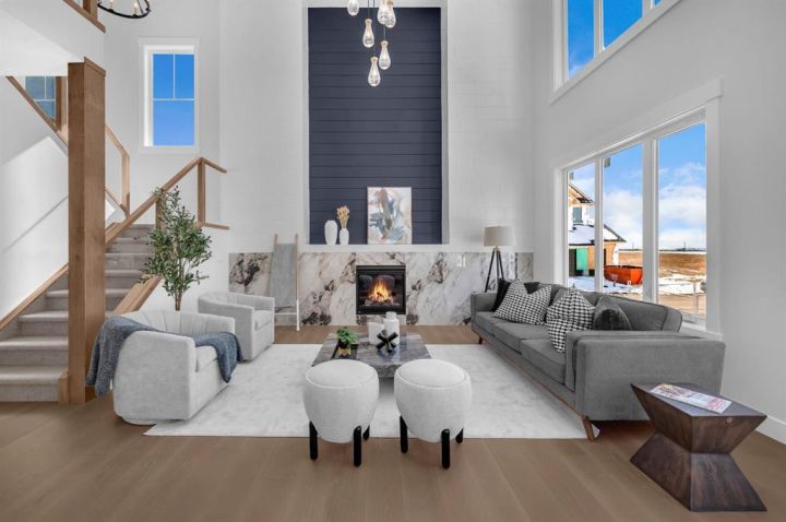 Welcome to this exceptional luxury home in the prestigious community of Waterford Estates, Chestermere. Step into a grand foyer that opens to an impressive living room with soaring open-to-below ceilings, setting the tone for the elegance and space this home offers. The main floor features a private office or den, a large bedroom with its own ensuite and closet, a spacious family room, a bright dining area, and a stunning gourmet kitchen with a massive island, complemented by a fully equipped spice kitchen and walk-in pantry. A generous mudroom and convenient two-piece bathroom complete this thoughtfully designed main level. Upstairs, the primary bedroom is a true retreat with a luxurious 5-piece ensuite and an expansive walk-in closet. The second bedroom also includes its own ensuite and walk-in closet, while two additional bedrooms share another full bathroom. A bonus room and upper-level laundry provide comfort and functionality for the entire family. Situated on a large pie-shaped lot with a huge backyard and a walkout basement, this home also features an attached three-car garage offering ample space for vehicles and storage. Ideally located near schools, parks, and shopping, this property combines elegance, convenience, and comfort in one of Chestermere’s most sought-after neighborhoods.