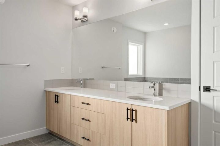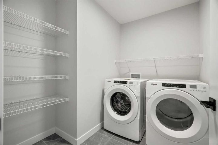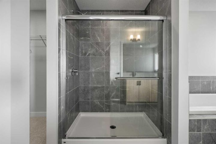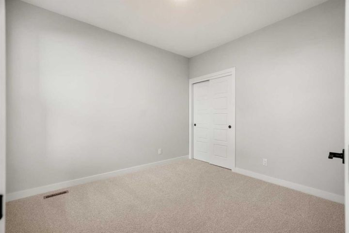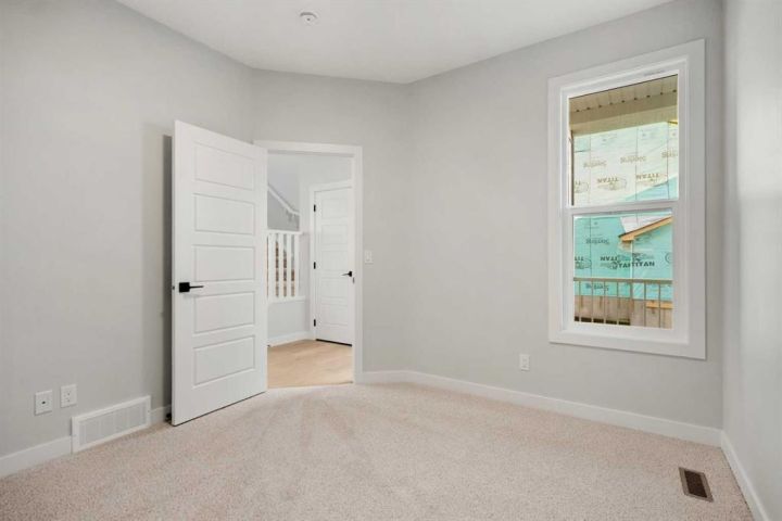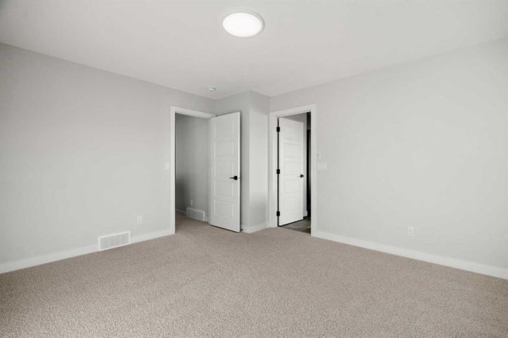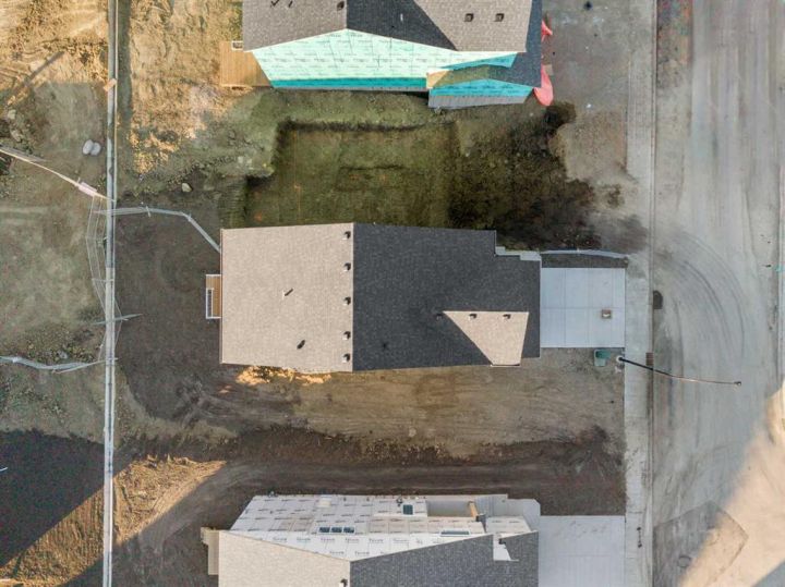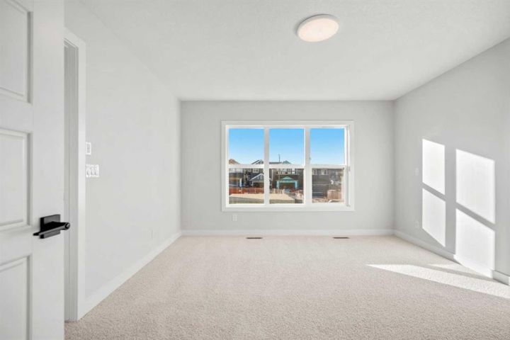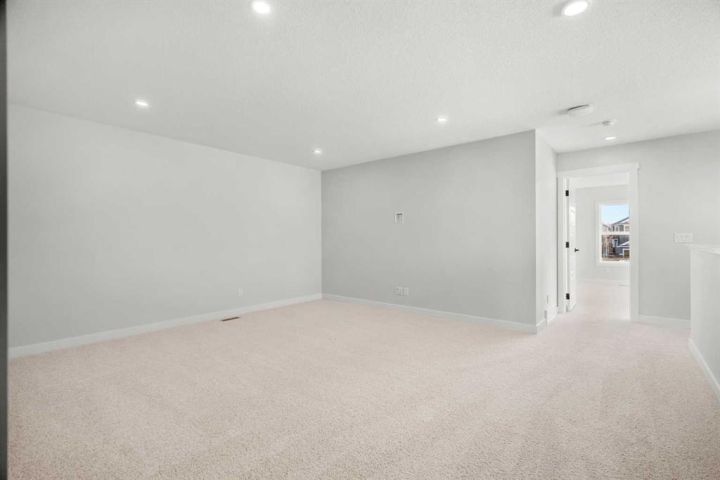 63 Creekstone Common SW, an exceptional new home in Calgary’s vibrant Pine Creek community that combines modern design, practical living, and natural beauty. Ideally located near scenic parks, pathways, and a peaceful community pond, this home offers a lifestyle that balances tranquility and convenience. Inside, the main floor features a thoughtfully designed layout with an inviting open concept. A main floor bedroom and full bathroom provide incredible flexibility—perfect for guests, multi-generational living, or a private home office. The chef-inspired kitchen is beautifully appointed with quartz countertops, 42-inch upper cabinetry and a generous layout that flows seamlessly into the great room, where a fireplace creates a cozy and welcoming ambiance. Elegant finishes throughout—including hardwood, tile, and carpet flooring—enhance the home’s sophisticated feel. Upstairs, a central bonus room serves as a comfortable retreat for family gatherings or movie nights, while the nearby full laundry room adds convenience to everyday living. The primary bedroom offers a true sanctuary with a luxurious 5-piece ensuite featuring dual sinks, a soaker tub, and a spacious walk-in closet. Two additional bedrooms round out this floor both equipped with walk in closets for added storage and convenience. Step outside to the rear deck, complete with a gas line, perfect for outdoor dining or entertaining. The side entrance offers added versatility and potential for future basement development. Built on a 9-foot foundation, the basement provides abundant space and flexibility for future customization. Combining style, comfort, and smart design, this home at 63 Creekstone Common SW is ideal for growing families, guests, or anyone seeking a peaceful community close to amenities and nature. Experience elevated living in one of Calgary’s most desirable new neighborhoods—your perfect home awaits. One or more photo(s) was virtually staged. The front exterior photo has been virtually staged with grass to help viewers visualize the home’s appearance once landscaping and construction are fully completed.
