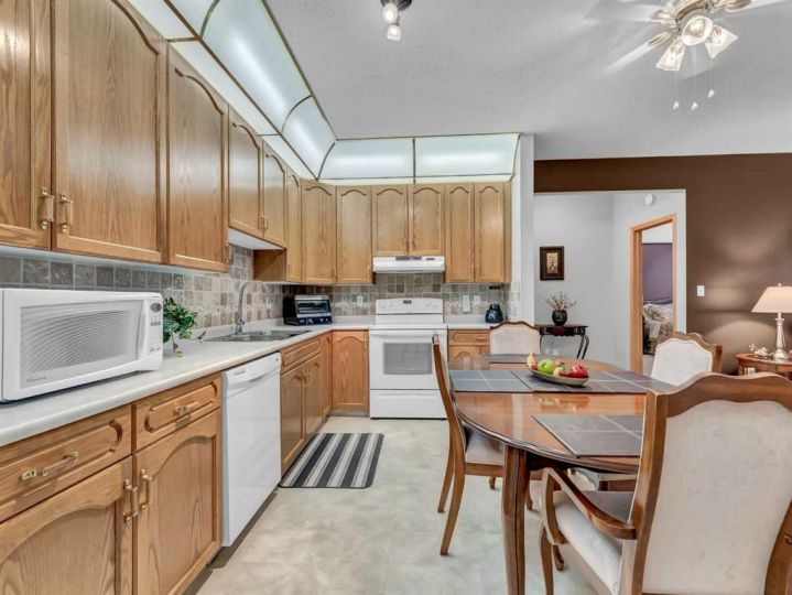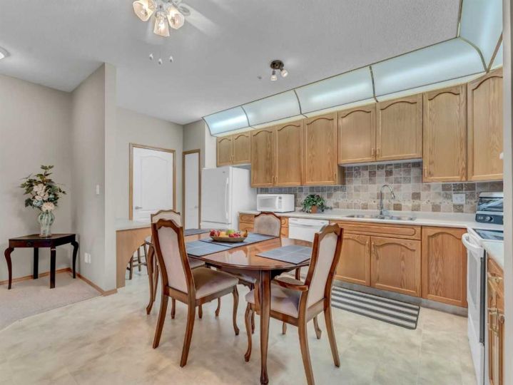 Welcome to Unit 234. A warm and inviting home located in Building B of The Courtyards. Conveniently situated close to the elevator and parking stall, with two bedrooms and two bathrooms, this residence has been meticulously cared for and features an open concept living space designed for comfort and functionality. The generous front entrance offers ample space for a bench seat, creating a welcoming atmosphere as you enter the unit. The kitchen boasts numerous cupboards, providing plenty of storage, and there is room for a large dining room table, perfect for entertaining or family meals. The master bedroom is thoughtfully designed with a double walk-through closet, leading to a three-piece ensuite bathroom equipped with a shower. The second bedroom provides flexibility for guests or as a home office. A good-sized in-suite laundry room comes complete with an additional small fridge, freezer, and a storage cabinet. The unit benefits from its own combined furnace and air conditioning system, ensuring comfortable temperatures year-round. Condo fees for Unit 234 are $574.15 per month, which include all utilities. Residents of The Courtyards enjoy a variety of amenities, including: • Heated indoor pool and hot tub • Heated underground parking stall and secured storage room • Games room • Fitness centre • Meeting rooms • Guest suites • Visitor parking The Courtyards is recognized as one of Medicine Hat’s premier senior condo complexes, providing a vibrant and comfortable community for its residents. Located within walking distance to restaurants, coffee shops, doctors, pharmacy and so much more! Make an appointment to view today.
