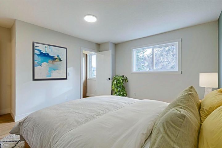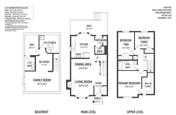 Stylish renovation in Cedarbrae! Every inch of this end unit townhouse has been reimagined with modern flair and natural light. The bright living room features a cozy wood-burning fireplace and flows into a dining area with chic lighting. The new kitchen shines with quartz countertops, sleek cabinetry, and a sunny bay window breakfast nook. Upstairs, the primary bedroom offers a feature wall and fabulous custom walk-in closet, plus two additional bedrooms and a refreshed main bath. The fully finished basement adds a spacious recreation room, flex room, and full bath. Outside, enjoy a private, tree-lined deck, perfect for relaxing or entertaining. With new flooring, doors, trim, kitchen, and baths throughout - this home is fresh, stylish, and completely move-in ready. Cedarbrae offers parks, playgrounds, and pathways to Fish Creek Park, plus nearby shops and cafes. A truly turnkey home in one of SW Calgary’s most welcoming communities!