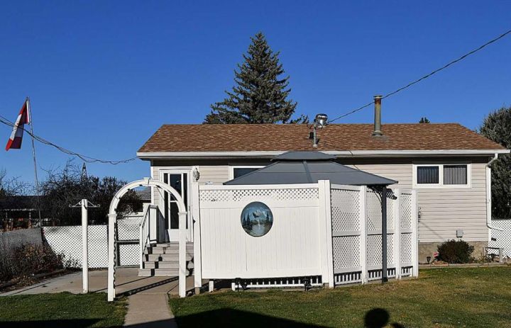 Welcome to the charming small-town life you've been searching for in Bassano! This well-maintained, 930 sq ft home, originally built in 1962, offers modern practicality with classic appeal, featuring updated windows and doors for peace of mind. The functional layout includes three bedrooms (two up, one down) plus a valuable den/office space in the finished basement. A very spacious laundry room, with washer, dryer, second fridge, deep freeze, and built-instorage shelves. The outdoor space is truly exceptional, boasting a stunning 29' x 12' cement deck with an 11' x 11' gazebo for all your entertaining needs, complemented by a lovely landscaped fenced yard with raised flower beds. Storage is handled with ease thanks to a 14’6 x 22’ detached garage with paved parking and back lane access, plus three additional storage sheds (8x8, 10x10, 8x3). Practical features like air conditioning and a backup generator mean you’re comfortable and prepared year-round. Beyond the property, you'll love the location—it's steps away from the golf course, K-12 school, swimming pool, and arena. Everything you need for daily life is within easy reach, including the grocery store, pharmacy, bank, post office, and several local restaurants and shops. This is small-town living, upgraded!