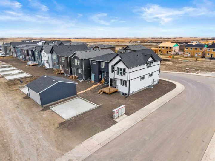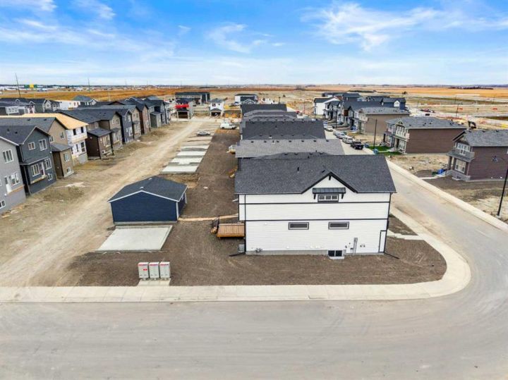 Welcome to 64 Homestead View—a residence that blends everyday practicality with elevated design. Positioned on a corner lot, this spacious home offers added privacy, generous outdoor space, and impressive curb appeal. The main floor features a convenient bedroom and full bathroom, providing an ideal setup for guests, multi-generational living, or a private home office. The heart of the home opens into a stylish kitchen equipped with quartz countertops, 42" upper cabinetry, a pantry, a kitchen island, and stainless-steel appliances that deliver both performance and refinement. Premium finishings—including rich flooring, sleek tile, and plush carpet—create a cohesive and inviting atmosphere throughout. A welcoming fireplace in the great room adds warmth and ambiance. Upstairs, a large central bonus room offers the perfect space for a media area or playroom, complemented by three well-appointed bedrooms. A full laundry room on this level adds everyday convenience. The primary bedroom serves as a relaxing retreat, complete with a 4-piece ensuite and a spacious walk-in closet. Outside, the home includes completed front-yard landscaping and a concrete parking pad for added flexibility. A rear deck provides the perfect spot for outdoor entertaining and convenient access to the yard, allowing indoor and outdoor living to blend seamlessly. With an additional entrance, the property also includes a fully developed secondary legal suite that can generate additional income—an excellent opportunity for both investors and homeowners. Located in the new community of Homestead, residents can enjoy a 19-acre environmental wetland with a sheltered gazebo and winding pathways, 4 km of walking trails with connections to the regional pathway system, a 3-acre community association site, a cricket pitch, soccer fields, and future pickleball and basketball courts. Shopping and restaurants are close by, and the Genesis Centre and Prairie Winds Park are only minutes away. Homestead offers activities for everyone—don’t miss your chance to experience all it has to offer. Contact the showhome today!