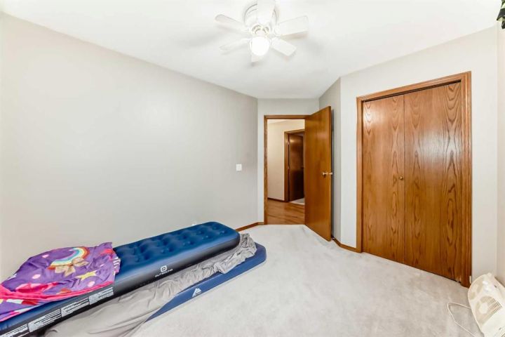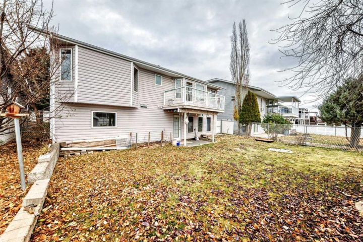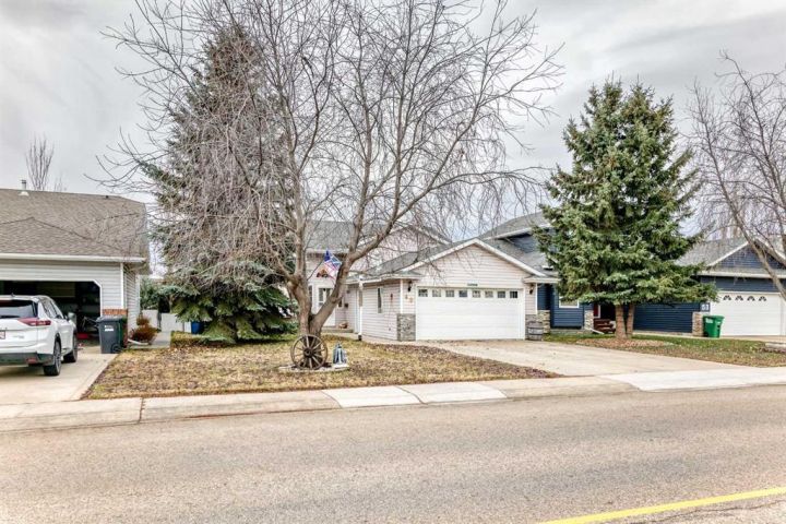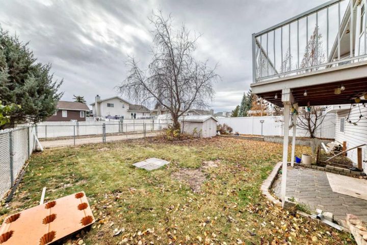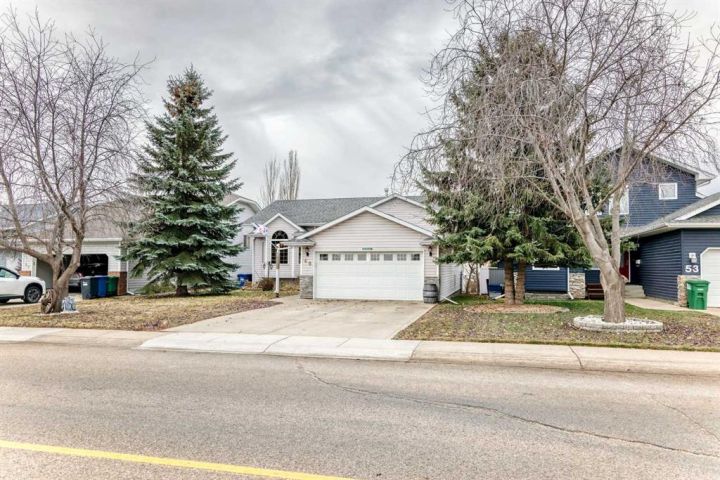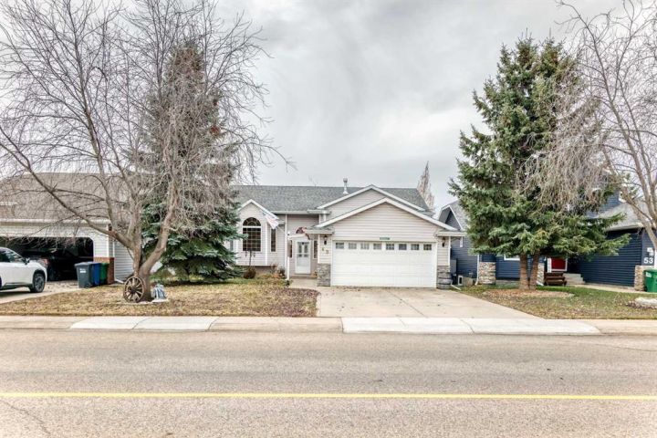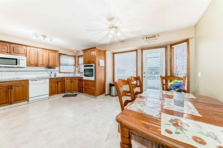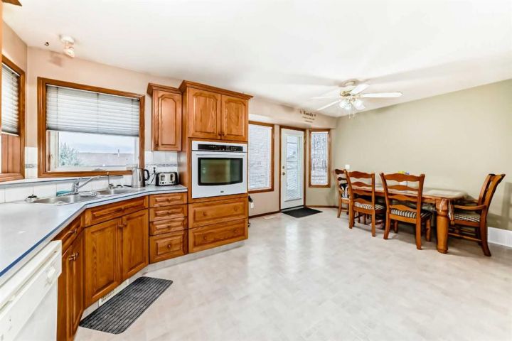 WELCOME to this fully finished home offering a spacious country kitchen with a bright south exposure, built-in convection oven, countertop stove, microwave/hood fan combo, and plenty of oak cabinetry—including a roll-out pot and pan drawer and a convenient pantry. The dinette opens to a covered Duradeck with low-maintenance aluminum railing, perfect for year-round enjoyment. The main bathroom features a relaxing jetted tub, while the oversized primary bedroom includes a walk-in closet and 3-piece ensuite, and there are 2 additional bedrooms on the main level. The professionally finished lower level offers backyard access with the walk-out basement, a family room with floating hardwood floors & a wood burning stove, an office area, and an additional bedroom with Berber carpet. Outside, the yard is fully landscaped with perennials and shrubs, the shed is included, and chain-link fencing with a 24’ gate. The heated, drywalled garage completes this ideal family package. This home is close to schools and amenities!