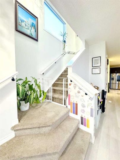 Welcome to 191 Corner Meadows Avenue NE, Calgary A Beautiful, Modern Half-Duplex with an Illegal Suite! Step into comfort, style, and functionality with this thoughtfully designed half-duplex offering over 2,300 sq. ft. of finished living space. Ideally located in the vibrant and fast-growing community of Cornerstone, this home is perfect for families or investors seeking a modern property with rental potential. Main Floor – Modern Living at Its Best Contemporary Kitchen: Featuring a sleek gas range with a chimney hood fan, extended island for meal prep or casual dining, and a convenient walk-in pantry for extra storage. Open-Concept Living & Dining: Bright and spacious areas designed for both everyday living and entertaining guests. Elegant Finishes: Extra pot lights and upgraded fixtures throughout the main floor create a warm, welcoming ambiance. Upper Floor – Comfort Meets Convenience Primary Suite: A large, sun-filled bedroom with a walk-in closet and a private 4-piece ensuite bathroom. Additional Bedrooms & Bonus Room: Two more generous bedrooms plus a versatile bonus/flex room—perfect for a home office, play area, or media space. Laundry Made Easy: Upper-floor stacked washer and dryer add everyday convenience. Illegal Basement Suite – Great Income Opportunity. also double Detached Garage. Separate Entrance for privacy and independence. Full Kitchen with modern appliances. Comfortable Living Area and 3-piece Bathroom. Currently tenant-occupied at $1,150/month plus 40% utilities — tenants are willing to stay, providing a seamless investment opportunity. Prime Location – Cornerstone Community. Situated in one of Calgary’s most desirable NE neighborhoods, this home offers easy access to parks, schools, shopping, and major roadways — making it ideal for families and commuters alike. Don’t miss your chance to own this stunning home in Cornerstone — where modern design, comfort, and investment potential come together!