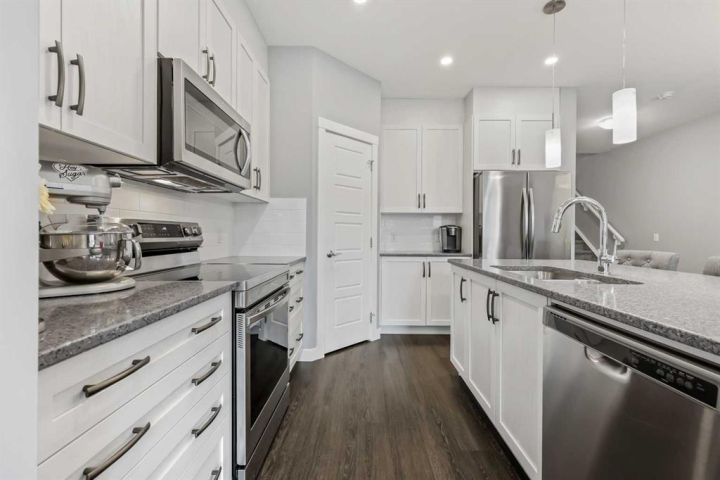 ** MOVE IN NOW - HOT NEW LISTING ** Best value in the beautiful Sage Hill community, where green space & fun are abundant! This home offers you over 2300+ sq ft of maximized "SPLENDID" living space for your enjoyment. BONUS: Single attached garage, full concrete driveway for two cars, and a bright sunny south/west facing backyard. You are welcomed into a lovely open floor plan with wide plank laminate floors & boasting great windows that invite natural daylight in, along with a smooth transition that leads into a great kitchen with an oversized central island featuring a sink/flush eating bar, corner pantry, stainless steel appliances which include a fridge, smooth top range, built-in dishwasher and over the range microwave. The great room enjoys views from a large window and 9' main-floor ceilings. Upstairs: beautiful primary bedroom with a walk-in closet & 3-piece private ensuite. Plus, a central bonus room area, 2 more bedrooms & a full 4-piece bathroom. The basement is fully finished with a super-sized area at 18' x 15' and features another full bathroom, storage, and a utility area. BONUS: High ceilings featured in the primary bedroom, Quartz countertops throughout, Staircase railings, Supersized yard, shed, 10' x 10' deck, extra-wide driveway for 2-car parking, Newer roof + gutters + eaves and siding repairs completed. This is your next home, and please add it to your 'Must See List! Situated within walking distance to the park(s) and only minutes away from the newly developed shopping area, it provides the convenience of having everything you could need fitting in your own neighborhood. Restaurants, groceries, daycare, medical and coffee shops all create a wonderful community and lifestyle for you to enjoy. With quick access to Symon Valley Parkway and Stony Trail while soaking up nature with a environmental reserve as your surroundings, Sage Hill is the ideal choice to start creating new memories. Discover today and welcome home. Call your friendly REALTOR(R) to book a viewing!