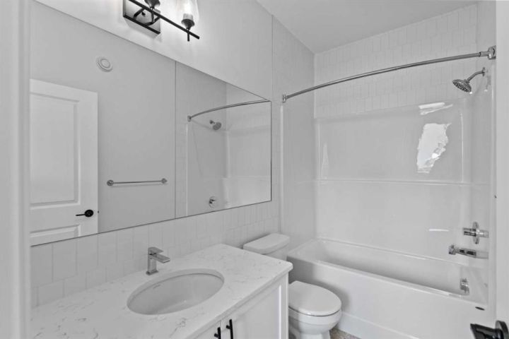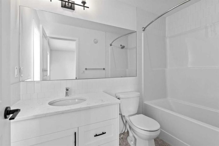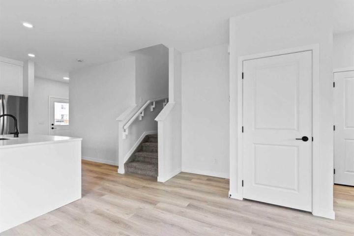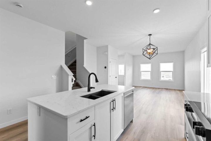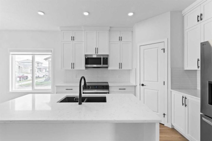 This custom McKee "built green" home in Vista Crossing is exactly what you've been looking for! A spacious 3 bedroom home PLUS an additional bedroom on the main floor….close to schools and parks this is truly a dream family home. The kitchen features upgraded cabinetry with pot drawers, quartz countertops, stainless steel appliances, and a large pantry. Luxury vinyl plank flooring in main floor, large windows for lots of natural light and designer detailing adds to the charm! Upstairs, the owner's suite includes a walk-in closet and ensuite along with two additional bedrooms, a full bathroom, and laundry room. This home is close to schools, playgrounds, walking paths and more! There's so much included in this brand new home!