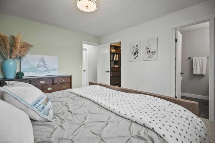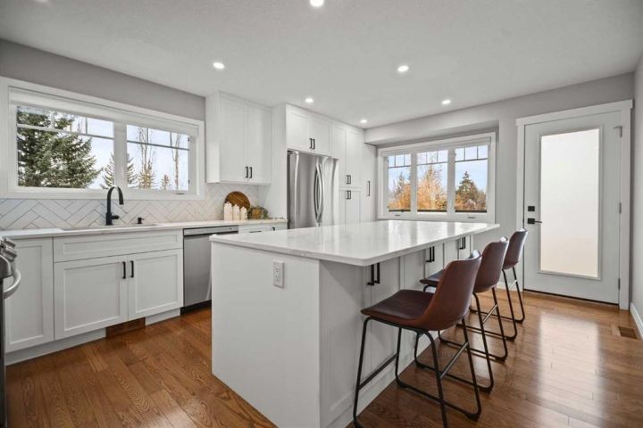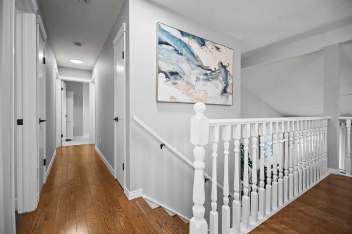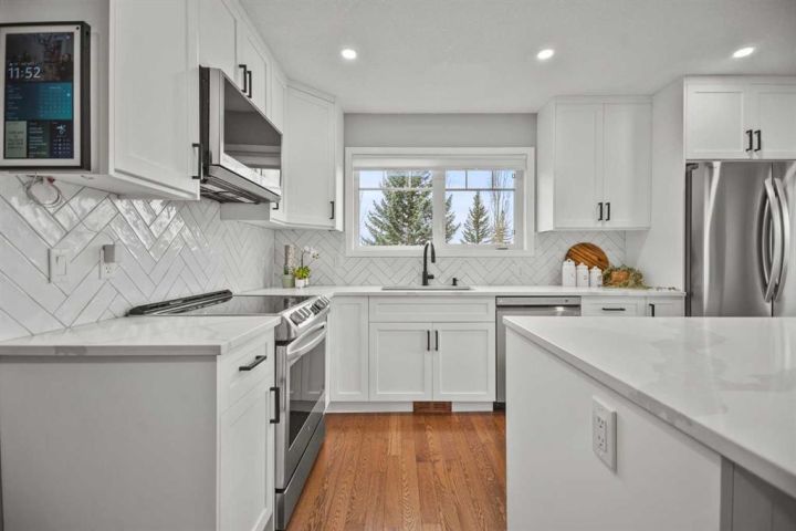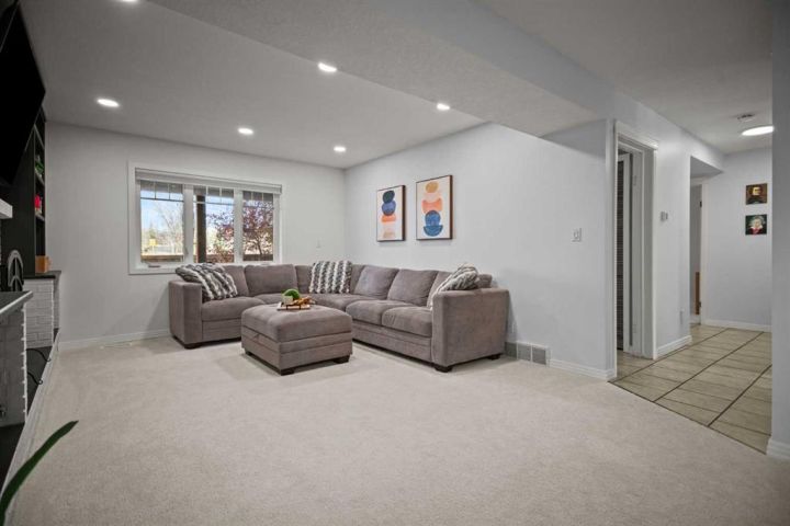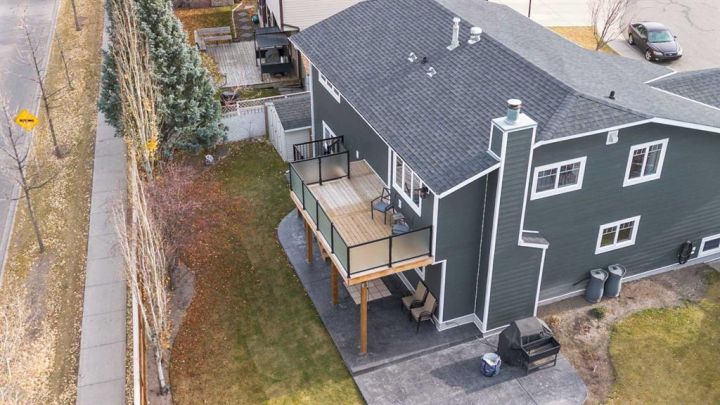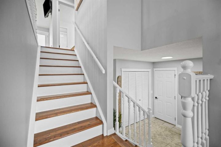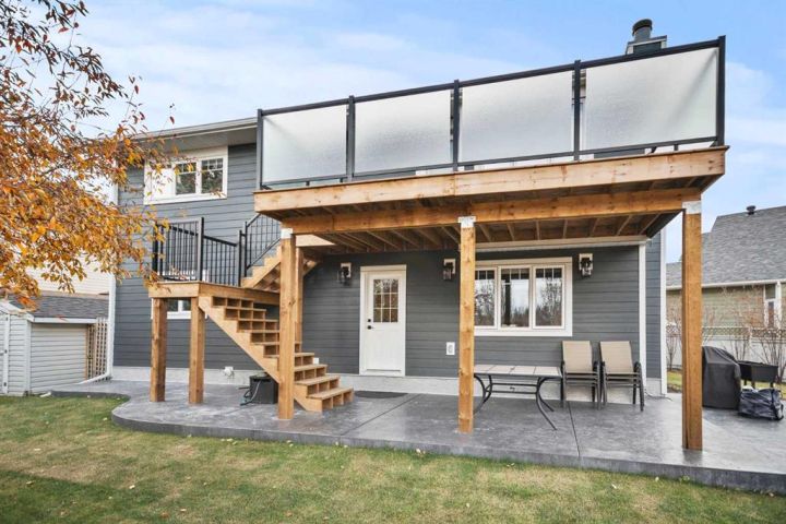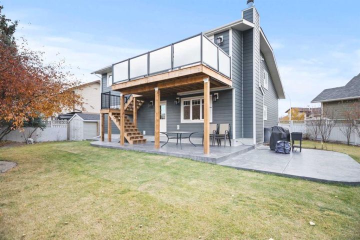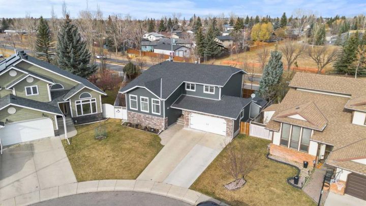 Looking for that special one that doesn’t come along very often? Tucked away on a quiet cul-de-sac in the desirable community of Downey Ridge, this beautifully UPDATED split-level home offers 4 bedroom and 2,250 square feet of pure charm with a unique, bright floorplan. You will love the new kitchen, renovated bathrooms, new carpets and paint, some new windows, new deck, new rear fence, rear stamped concrete pad, and full Hardie Board exterior! Enter into the living room where you will be impressed by the vaulted ceiling that creates an open, airy feeling, with large windows flooding the space with natural light. The beautiful hardwood floors are in impeccable shape and carry throughout the second and third levels. The new kitchen features custom cabinetry, quartz countertops, and upgraded appliances, opening onto a bright dining area that overlooks the main living room. The spacious primary suite is complete with a beautifully renovated ensuite and of course, a large walk-in closet. Two other bedrooms and remodeled bathroom round out this level. The lower-level family room offers a cozy retreat with a fireplace and wet bar-- perfect for entertaining. Outside, you’ll love the large, private yard with mature trees, a new stamped concrete patio, new back fence and plenty of space to relax or entertain. The basement level is ready for development into another bedroom or flex area of your choice and, being a split level, has a TON of room for storage! As noted above, the exterior has been completely redone with new Hardie Board siding, giving the home a fresh, modern curb appeal. This location is one of Okotoks’ best—just a short walk to schools, the Okotoks Recreation Centre, parks, and pathways. With its thoughtful renovations, timeless character, and ideal family layout, this Downey Ridge gem is move-in ready and waiting to welcome you home!