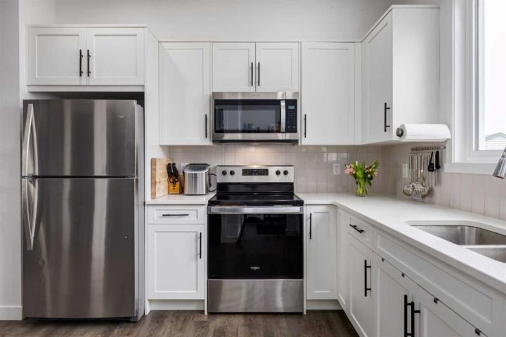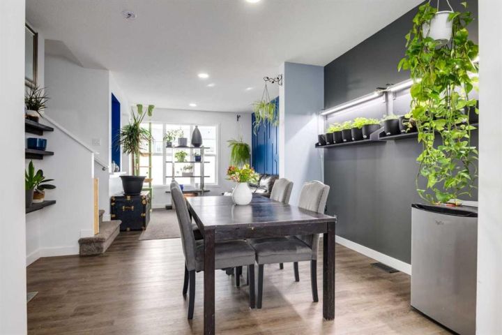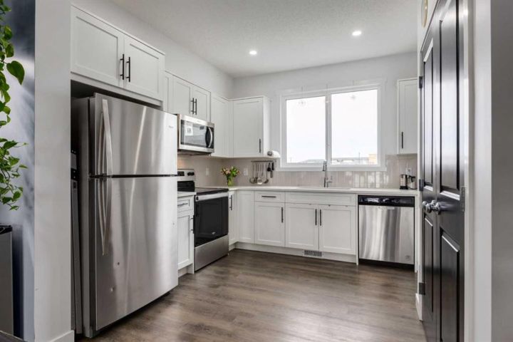 OPEN HOUSE: SUNDAY, NOVEMBER 9, 2:00–4:00 Presenting an exceptional family residence located in the highly desirable northwest community of Carrington. This property offers approximately 1,200 square feet of thoughtfully designed living space, featuring an expansive open-concept main floor ideal for entertaining. Upon entry, a feature wall adorned with crown molding lends an elegant touch to the interior. Abundant natural light streams through large windows, creating a bright and inviting atmosphere. The main living space connects effortlessly to a spacious dining room, making it ideal for hosting large events like holiday dinners. A stylish shelving feature provides a great spot to showcase your personal collections. The kitchen comes fully equipped with stainless steel appliances, quartz countertops, and abundant cabinetry. Its layout is designed to accommodate several cooks at once, with a conveniently placed double-door pantry offering generous storage. Tucked near the kitchen, a discreet powder room maintains privacy from the main living areas. You’ll also find easy access to the backyard and parking pad, which makes bringing in groceries especially convenient. On the upper level, the primary bedroom—accessed via a stylish sliding barn door—provides sufficient space for a king-size bed and nightstands. A large walk-in closet lines one wall, and a four-piece ensuite delivers comfort and privacy. This floor also features two additional bedrooms, which may serve as an office or nursery, along with a second four-piece bathroom. Laundry facilities are conveniently situated on this level. Additionally, the property includes an undeveloped lower level comprising 522 square feet, offering potential for future development or enhanced storage capacity. Located just steps from parks, pathways, and green spaces, with quick access to shopping, schools, both Stoney Trail and Deerfoot Trail, this home offers exceptional value for families, professionals, or investors alike.