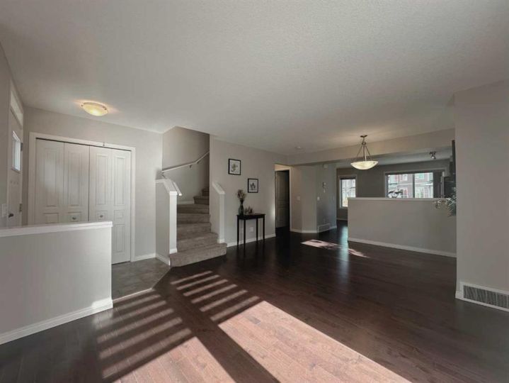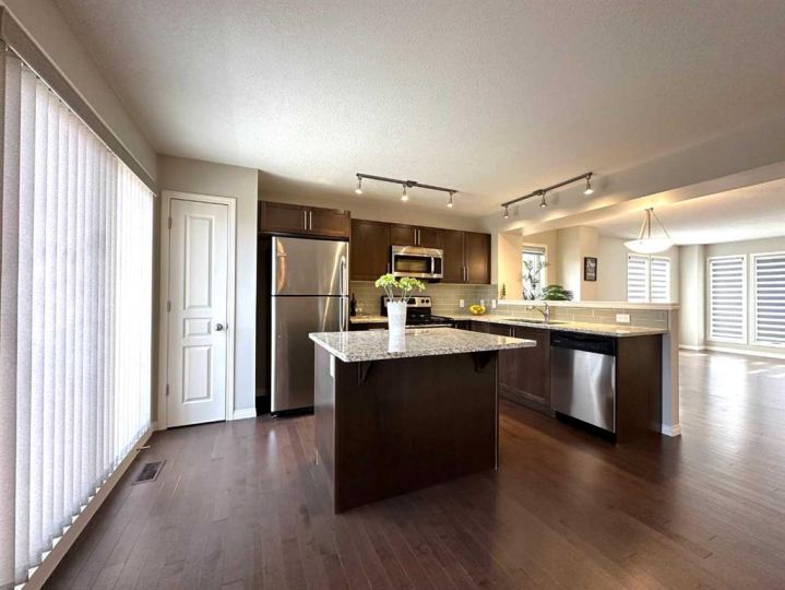 Open house 2-4:30pm Nov. 8. Welcome to this RARE OPPORTUNITY to own a beautifully upgraded 2-bedroom, 2.5-bathroom, double garage END UNIT townhome in the heart of Auburn Bay’s Muskoka! Perfectly situated across from Auburn Bay Station Shopping Centre, walking distance to off-leash park, schools, playgrounds, tennis court, and just steps from Auburn Bay’s 43-acre lake, private parks, and beaches. This home offers a perfect balance of convenience and leisure. Step inside, you’ll be greeted by a warm, cozy, bright, and welcoming atmosphere. The main floor boasts a spacious open-concept living area with expansive sunlit windows and beautiful hardwood floors throughout. The stylish kitchen showcases granite countertops, backsplash tile, modern appliances, a large island, and ample counter space. The kitchen leads to a private balcony and a flex room with a versatile space for a dining area or home office. Upstairs, you’ll find two spacious master bedrooms, each with its own 4 piece en-suite bathroom and walk-in closet, providing ultimate privacy and convenience. Full laundry room /linen closet is also conveniently located on this level. The basement, with plenty of storage options, connects to the double attached garage for secure parking and additional storage space. Countless Upgrades throughout include: FRESH PAINT THROUGHOUT. NEW BLIND. Bathrooms with granite countertops and two added drawers in vanity; Hardwood, tile and carpet flooring; Huge upgraded kitchen with beautiful granite counter tops, gorgeous kitchen backsplash tile, 12” extended island counter top, and stainless steel appliances; Balcony off the main level; Outlet to the basement; Barbeque gas line rough-in for easy barbeque entertainment. Living in the sought-after LAKE community of Auburn Bay means access to a vibrant, lake-centered lifestyle with walking trails, parks, playgrounds, year-round activities at the community lake; quick access to Stoney Trail and Deerfoot Trail; easy access to downtown: BRT bus (302), and near future LRT stations. This 1,254 sq.ft. end-unit is the perfect blend of comfort, modern style, and location - ideal for first-time buyers, downsizers, or investors seeking a move-in ready property in one of Calgary’s most desirable lake communities. Welcome to your new home! QUICK POSSESSION. Professional cleaned.