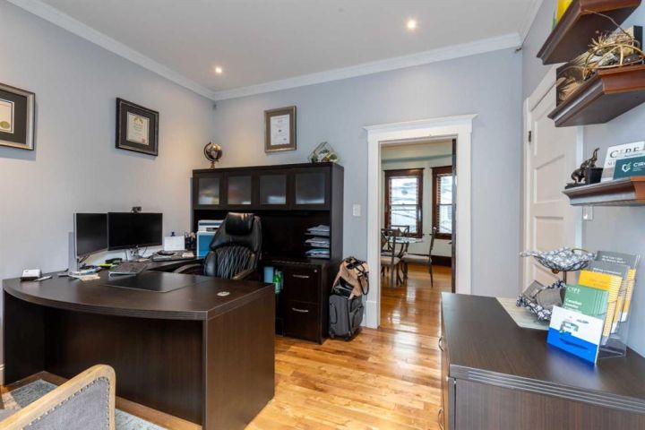 Located on the highly sought-after SE Hill, this 1913 character home on Belfast Street combines historic charm with thoughtful updates. The main floor offers a family room, dining room, kitchen, main floor laundry, a 2-piece bathroom, and a versatile office with its own exterior entrance—ideal for a home-based business. Original hardwood, classic French doors, a welcoming front porch with a swing, and an impressive central staircase highlight the home’s timeless appeal. The second level features three bedrooms, a renovated 4-piece bathroom complete with a soaker tub and separate walk-in shower, and a spacious walk-in closet in the primary bedroom. From this level, you can also access a private upper balcony with dura-deck and newer railings. Outside, the property includes newer vinyl fencing, underground sprinklers front and back, a terraced deck, and a gazebo—offering multiple spaces to relax or entertain. The oversized double detached garage provides excellent storage and includes potential to complete a loft area above by adding a doorway and staircase. RV parking and an asphalt stamped driveway add further convenience and appeal. Many windows have been replaced, and the furnace was upgraded in 2022, adding peace of mind for future owners. Some finishing work on window and door trim remains, giving buyers an opportunity to add their own touches. This is a rare chance to own a well-maintained character home in one of the city’s most desirable neighbourhoods, with major improvements already taken care of.