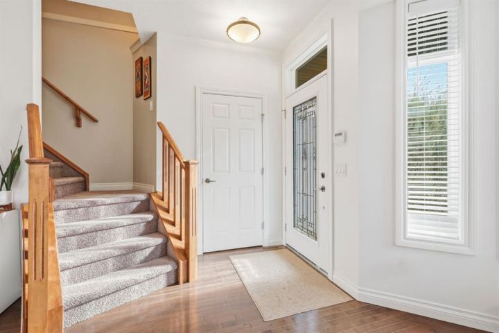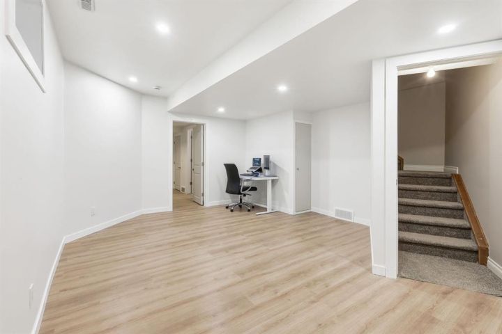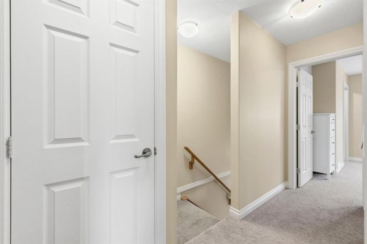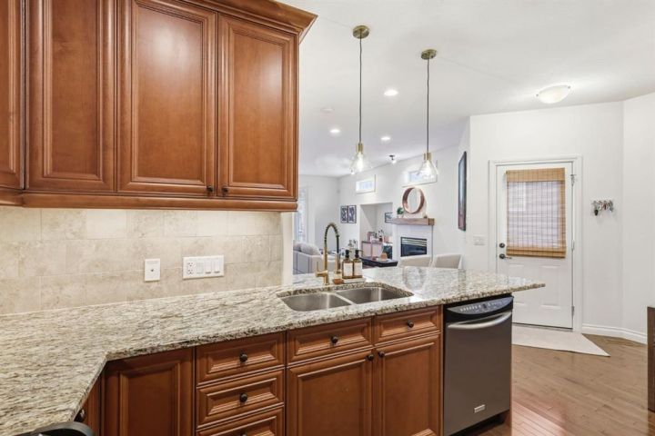 Welcome to this stunning south facing townhome in a well maintained 4 plex offering an abundance of natural light and an inviting open layout. The main floor features hardwood floors, a cozy living room with a gas fireplace, a spacious dining area, and a beautifully finished kitchen with modern cabinetry and stainless steel appliances perfect for entertaining. Upstairs, you’ll find a primary suite with a 4 piece ensuite and walk-in closet, along with an additional bedroom also complete with its own 4 piece ensuite and convenient upper level laundry. The brand new finished basement adds valuable living space with a large recreation area, a bedroom with 3 piece ensuite and plenty of storage. Step outside to enjoy your sun soaked south facing deck and large private patio, ideal for relaxing or summer gatherings. Additional highlights include a detached garage, low condo fees, a built in sound system, new hot water tank (2024), and added roof insulation (2024) for extra efficiency. Located close to Chinook Mall, transit, and just a short drive to downtown Calgary, this home perfectly combines comfort, convenience, and truly a must-see!