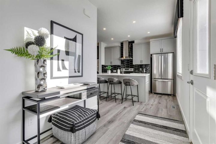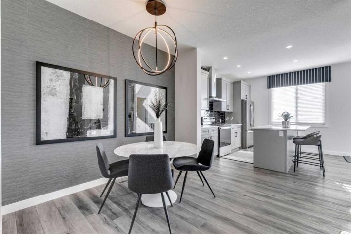 Welcome to the Onyx – a stunning home offering both style and functionality. This home showcases on-trend, designer-curated interior selections tailored for a custom feel. Featuring a full range of smart home technology, this home includes a programmable thermostat, ring camera doorbell, smart front door lock, smart and motion-activated switches—all seamlessly controlled via an Amazon Alexa touchscreen hub. Stainless Steel Washer and Dryer and Open Roller Blinds provided by Sterling Homes Calgary at no extra cost. The chef-inspired kitchen features stainless steel appliances, a chimney hood fan, a gas range, and a walk-in pantry with a French door. The main floor includes a versatile den/flex room and is finished with durable LVP flooring throughout the main floor and wet areas. Upstairs, enjoy a spacious bonus room and additional windows that fill the home with natural light. The primary bedroom offers a walk-in closet and a 3-piece ensuite with a fiberglass base shower with tiled walls. Quartz countertops with undermount sinks are featured throughout the home. The basement boasts larger windows and a side entrance, ready for potential future development. The Onyx is perfect for modern living! Photos are representative.