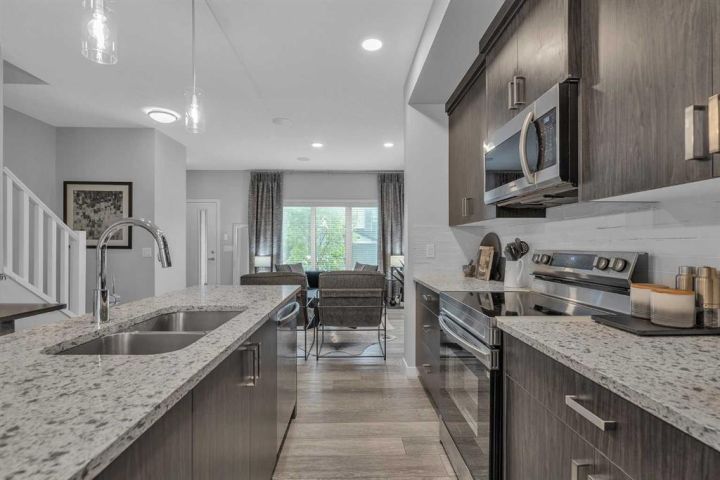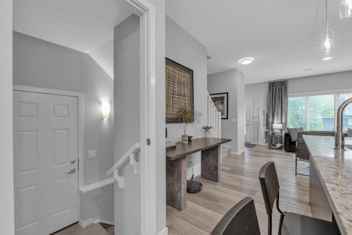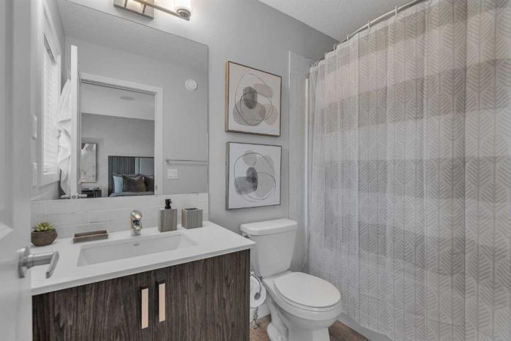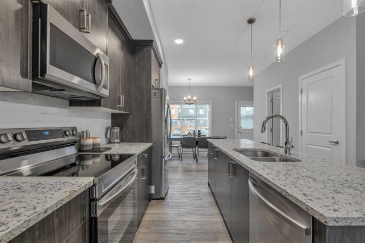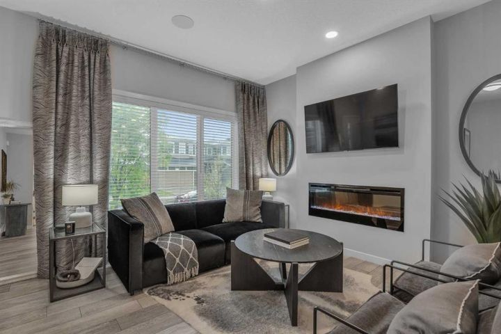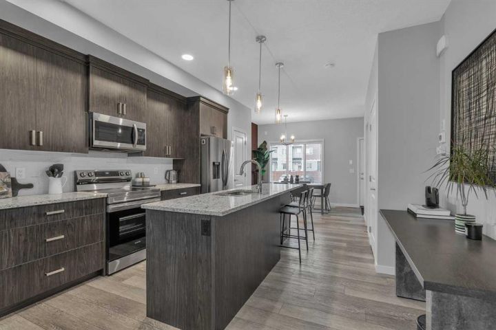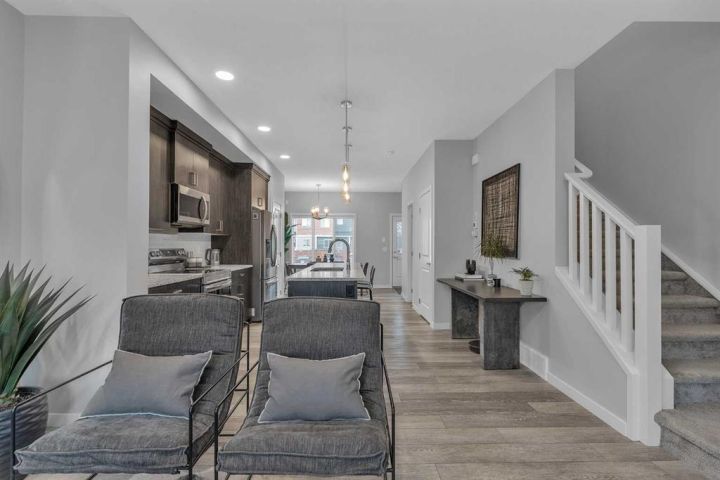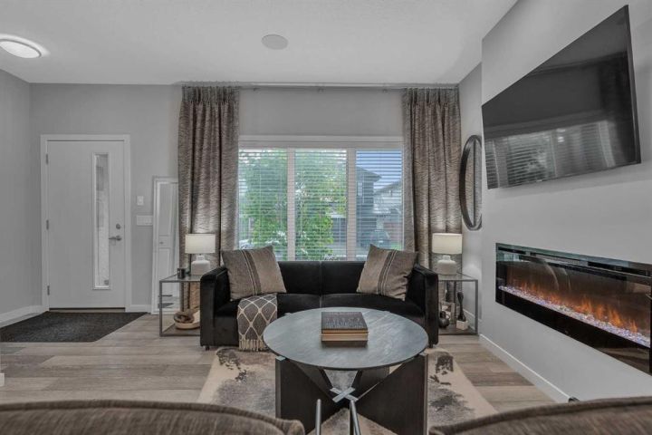Welcome to this stunning, fully upgraded Home located in the highly sought-after community of Chinook Gate, Airdrie! This beautifully maintained property boasts 1,817 sq ft of total living space, including a fully finished basement and thoughtful upgrades throughout. As you step inside, you’ll immediately notice the 9 ft ceilings and abundance of natural light that enhance the open-concept main floor. Enjoy elegant touches such as luxury vinyl plank flooring, a cozy fireplace, and a gourmet kitchen featuring quartz counter tops, maple cabinetry, and stainless-steel appliances—perfect for entertaining or everyday living. Upstairs, you'll find a spacious primary bedroom complete with a walk-in closet and a private 4-piece ensuite. Two additional well-sized bedrooms and another 4-piece bathroom offer ample space for family or guests. Enjoy built-in speaker wiring throughout the main floor and master bedroom—perfect for music lovers or home audio enthusiasts. The fully developed basement adds incredible value with a separate entrance, large living room, bedroom, and an additional 4-piece bathroom—ideal for guests or personal use. The house offers additional amenities such as central Air- Conditioning, concrete parking pad and a deck. This home truly has it all – style, functionality and location. Don’t miss your chance to make it yours. Book your private showing today!
