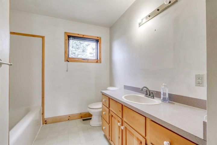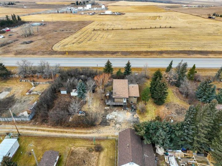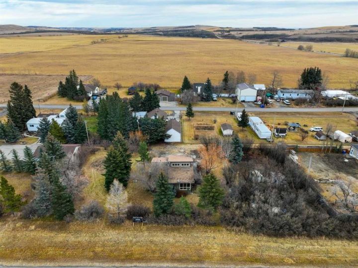 This unique miniature acreage in the hamlet of Naphtha offers 0.5 acres of space with its own well and septic system, surrounded by mature trees and plenty of room to grow your own food. The single-level home features two bedrooms and one bathroom, with a main living area that feels bright and open thanks to soaring vaulted ceilings, large windows, and an abundance of natural light. The kitchen includes knotty pine cabinets, and the laminate flooring adds to the warm, rustic feel. The lower level offers a spacious rec room and potential for an additional bedroom. Situated between Diamond Valley and Longview along Highway 22, this property is just five minutes from Diamond Valley’s Black Diamond side, making it a rare opportunity for anyone seeking space, privacy, and country living with easy access to nearby amenities.