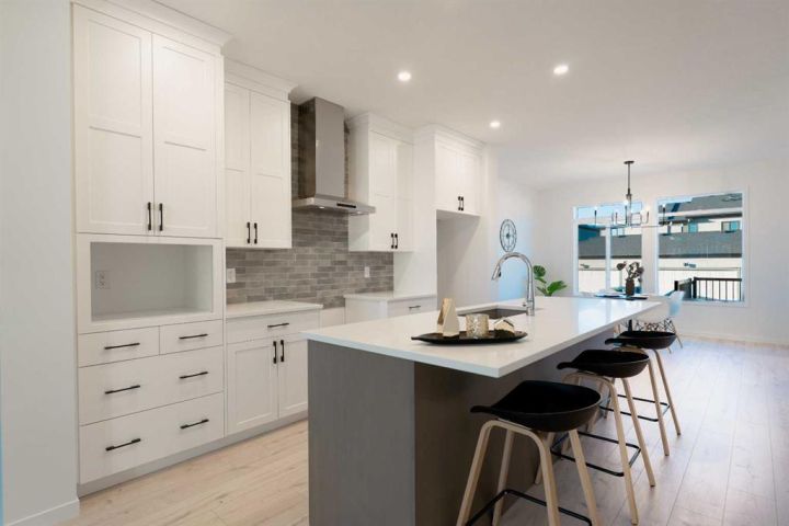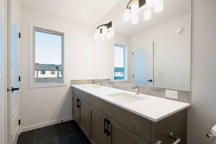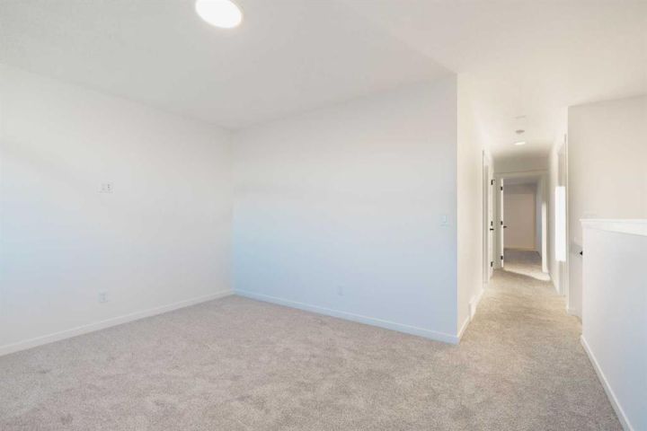 Welcome to the Arista I by Morrison Homes — a beautifully designed, upgraded home in Wolf Willow. This bright and modern 3-bedroom plus bonus room layout offers open-concept living with elevated finishing's throughout. The main floor features a stylish gourmet kitchen complete with stainless steel appliances, gas range, French-door fridge with exterior water and ice, undermount Silgranit sink, quartz countertops, a designer tile backsplash, and a walk-in pantry. The living space is warm and inviting, centered around a stunning 50” linear electric fireplace with a full-height tile surround. The home offers tile flooring in the mudroom, laundry room, ensuite, and main bath, upgraded lighting with pot lights and Decora switches, premium vinyl siding, and a black hardware package carried throughout for a clean, modern look. Upstairs you’ll find a spacious bonus room along with a serene primary suite featuring a walk-in tiled shower, dual sinks, extended vanity, walk-in closet and lots of natural light. Two additional bedrooms and full upper laundry complete the upper floor. Step outside to a low-maintenance all-weather deck with aluminum railing and a gas line for BBQ. The basement features an added slider window — ideal placement for a future finished recreation room. Wolf Willow offers incredible lifestyle amenities including Bow River access, Fish Creek Park pathways, playgrounds, dog parks, and quick access to Blue Devil Golf Course. A beautiful new home, a trusted builder, and a stunning river-valley community. Welcome Home!