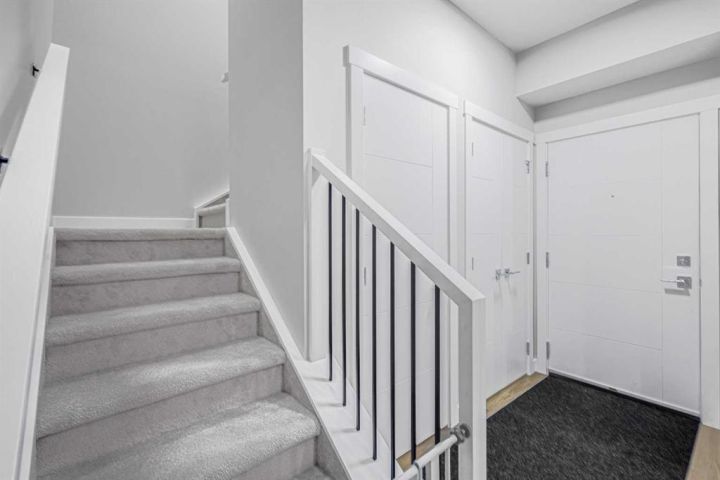Welcome to Sky 151, ideally located just off Country Hills in the desirable Skyview Ranch community of Calgary NE. The building is located near schools, shopping, airport and next to Calgary transit stop. This open concept unit has modern finishes with quartz counters, LVP flooring, spindle railing, in-unit laundry and has access from two levels. The main floor is perfect for entertaining family and friends with a chef inspired kitchen, grand living area, a bedroom with connecting bathroom, and access to balcony. Upstairs you find a loft, a primary bedroom with walk-in closed and ensuite with standing shower. Note - there is a separate access to hallway from the 2nd floor. Tons of natural light throughout the property. This is one of a kind building which offers two level condo living and plenty of outdoor space. There is plenty of room for a growing family to consider this as their home. There is one underground heated parking that comes with the unit. Call today to book your appointment.