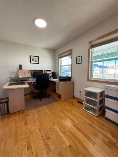 Located on a generous corner lot in the desirable Silverwood Crescent, this custom-built, two-storey home is a true gem in High Prairie, where homes of this stature are a rare find. Constructed in 1996, this 2285-square-foot residence combines functional living with unparalleled outdoor space. Step inside to discover a thoughtfully designed galley kitchen, which offers the benefits of easy workflow and features a convenient pass-through to the formal dining room on one end and a cozy breakfast nook on the other—complete with dedicated space for your coffee pot and toaster. The inviting living area is anchored by a warm, wood-burning fireplace with built-in wood storage and is flooded with natural light from ample windows that frame the stunning backyard views. This room provides access to the composite deck, perfect for entertaining and relaxing. For more intimate outdoor moments, a separate small BBQ deck is easily accessible directly from the breakfast nook. The property itself is an oasis, feeling more like a private acreage than an in-town lot. Spanning almost half an acre, it backs directly onto a creek, offering both privacy and picturesque scenery. Upstairs, you will find three comfortable bedrooms, a main bathroom that conveniently houses the washer and dryer, and a fantastic bonus room over the garage featuring windows that provide a panoramic view of the entire street. The home's potential extends into the full, partially finished basement, currently being used as a fun recreation space or ready to be transformed with future bedrooms, and is complemented by a heated, attached double garage.