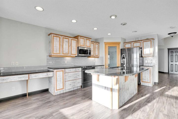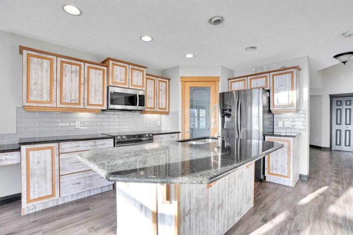 Welcome to this well maintained, FULLY FINISHED, FOUR bedroom home within walking distance to PATHWAYS, PONDS and TWO schools! The main floor features gorgeous new VINYL PLANKING throughout the entire main floor (2019), an inviting dining area, spacious living room with corner fireplace that is open to the breakfast nook and kitchen area; perfect for entertaining. The kitchen showcases the new modern BLACK STAINLESS STEEL appliances , a SUBWAY TILED back splash, GRANITE counter-tops and an abundance of counter space with corner pantry. The back of the home is flooded with natural light as there are seven windows! A two piece bathroom and convenient main floor laundry complete the main. The upper level has a spacious BONUS room with OFFICE/TECH room attached, four piece bathroom, three good sized bedrooms; one being the master retreat with 4 piece ensuite and walk in closet. The lower level features gorgeous CARPET, a WET BAR, a massive entertainment area, 4 piece bathroom and another bedroom. This home is fully landscaped with a welcoming, low maintenance rock garden in the front and a large deck in the back with a children's playground. This sought after community has paved pathways, numerous playgrounds, green spaces and schools. Just minutes away from all the amenities on 130th Avenue, McKenzie Towne shopping center, South Calgary Campus, YMCA and so much more!