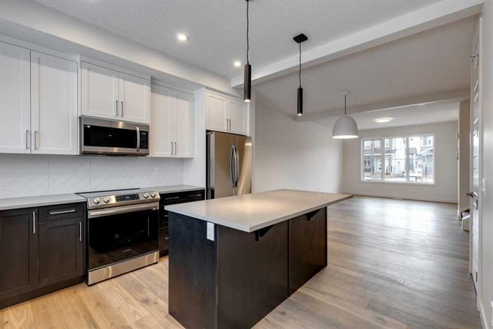 Excellent value in Sunset Ridge ... Introducing the Edinburgh by Douglas Homes Master Builder ... a stylish three-storey townhouse offering 3 bedrooms, 2.5 bathrooms, and a double-attached garage, all with no condo fees. Thoughtfully designed for comfort and convenience, this home features a ground-level flex room that’s perfect for a home office, gym, or hobby space. The open-concept main floor showcases 9' ceilings, engineered hardwood throughout, and a bright living area anchored by an electric fireplace. The modern kitchen is finished with quartz countertops, stainless-steel appliances, and a central island that’s ideal for casual dining and entertaining. Upstairs, you’ll find three bedrooms including a spacious primary suite with walk-in closet and private ensuite, along with the convenience of upper-floor laundry. Completing the home are a raised treated-wood deck, full front landscaping, and a concrete patio ready to enjoy from the moment you move in. Located in the family-friendly community of Sunset Ridge, you’re close to RancheView School, parks, and pathways with easy access to Calgary and the mountains. Quick possession available. Key Highlights | Three-Storey Townhouse | No Condo Fees | Double-Attached Garage | Ground-Level Flex Room | Full Landscaping | 9' Ceilings | Quartz Countertops | Engineered Hardwood on Main | Upper-Floor Laundry | Electric Fireplace | Treated Wood Deck | Concrete Patio Please note: Landscaping and yard completion are seasonal items and subject to weather conditions.