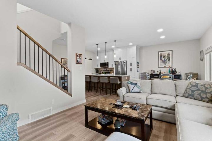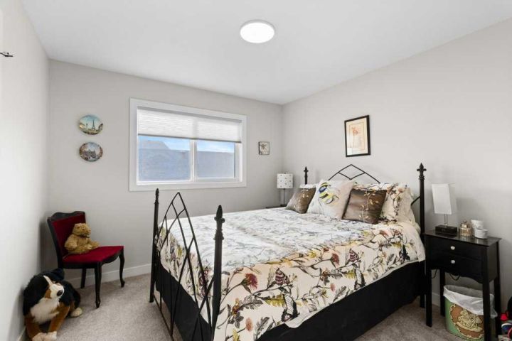 Welcome to this stunning 1,526 sq ft two-story home built in 2024 by Falcon Homes, located in the sought-after Crestview community of Sylvan Lake. Perfectly positioned facing a park, this modern home combines style, comfort, and functionality throughout. The exterior showcases attractive vinyl siding with stone accents, offering great curb appeal. Step inside to an inviting open-concept main floor featuring a bright kitchen with a large island, white soft-close cabinetry, quartz countertops, stainless steel appliances, built-in microwave, and a walk-through pantry for convenient storage. A charming barn-style sliding door leads from the kitchen to the back entry, where you’ll find the laundry area and easy access to the attached garage—perfect for unloading groceries. The main floor also includes a half bath, an electric fireplace in the living room, and large sliding doors from both the dining and living areas that open onto a spacious back deck with a pergola, partially covered and complete with a gas line for your barbeque. Enjoy the fully fenced backyard with a garden box, shed, and RV parking via back alley access. The attached double garage is insulated, wired for 220, offering year-round convenience. Upstairs, you’ll find three generous bedrooms, including a large primary suite with a walk-in closet and a 4-piece ensuite, plus an additional 4-piece bathroom for family or guests. The basement is drywalled and ready for your finishing touches, featuring a spacious family room, bonus area, and storage. Additional features include vinyl plank flooring throughout the main level, carpet in the bedrooms, air conditioning, built-in gemstone lights, window coverings, and New Home Warranty for peace of mind. This home offers everything you need for comfortable modern living—just minutes from Sylvan Lake’s beaches, shops, restaurants, and recreation.