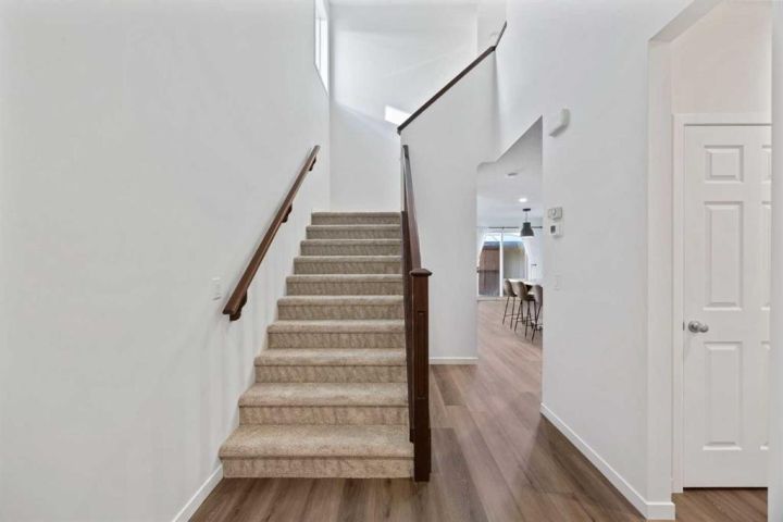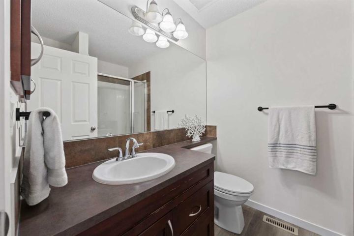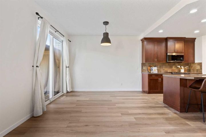 Step inside this bright and spacious 3 bedroom, 2.5 bath semi-detached home with an attached garage, perfectly located near the 12-acre pond, walking paths, community centre, shopping, restaurants, and public transit. Recently renovated from top to bottom, this home features modern vinyl plank flooring, brand new carpet, updated lighting and toilets, fresh paint, and more! The popular open-concept floor plan offers 9' ceilings, a warm designer colour palette, and a stunning custom fireplace that anchors the inviting living area. The kitchen is a chef’s delight, complete with rich cabinetry, a corner pantry, centre island, and sleek stainless steel appliances. The adjacent dining area is perfect for entertaining, with patio doors leading to a large deck and private fenced yard. Upstairs, discover three generous bedrooms, including a primary retreat with a walk-in closet and ensuite featuring a shower. The unspoiled basement is ready for your personal touch and includes a large window, rough-in plumbing, and full insulation—an ideal space to expand your living area. Enjoy being close to the South Health Campus with easy access in and out of the community. You’ll love the location, the updates, and the lifestyle that comes with living in New Brighton. Call today for your private showing!