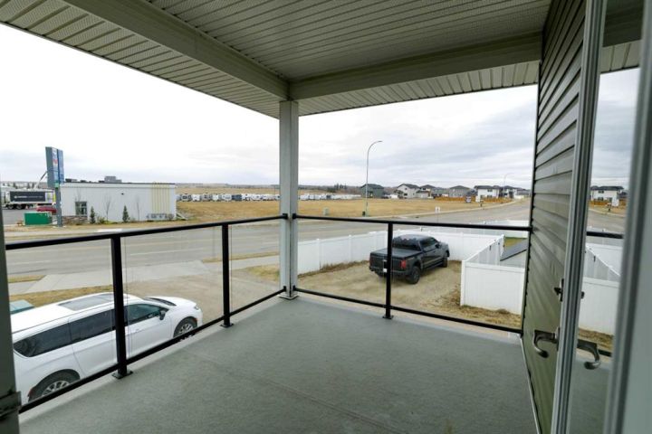 Welcome to this 2nd level, bright and modern 2-BEDROOM, 2-BATHROOM condo in the heart of Blackfalds! This beautifully maintained home offers an open-concept layout with a stylish kitchen featuring white cabinets, stainless steel appliances, and soft-close drawers. Enjoy the convenience of IN-SUITE LAUNDRY with a stacked washer and dryer, plus NO CARPET —easy-care flooring runs throughout and the front entry features a larger than standard closet. Step outside to your COVERED WEST-FACING DECK and take in the beautiful sunset views, or enjoy the mature gardens just outside your front door. Two POWERED PARKING STALLS are located right outside, along with a visitor stall beside for added convenience. PERFECTLY LOCATED near the Abbey Centre for year-round recreation, and right across from the mountain bike park and skate park. You’ll love the quick access to both highways, plus nearby restaurants and convenience stores. A wonderful place to call home or a great investment opportunity in a growing community!