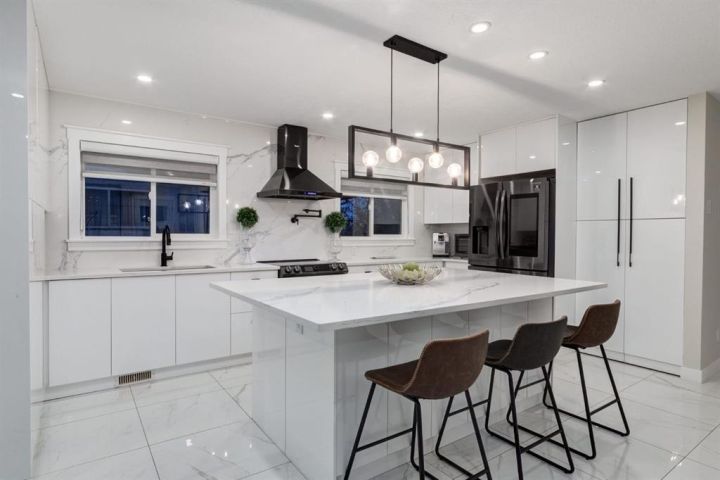 Must-see for owners and investors alike! Completely reimagined inside and out, this rare 5-bedroom, 4-bathroom (including 4 en-suites) bungalow with a separate entrance sits proudly on a massive 7,696 sq. ft. (70’ x 100’) lot — one of the largest in the area. The space, design, and versatility of this home set a new standard for comfortable, stylish, and profitable living. The main level (approx. 1,300 sq. ft.) showcases a stunning open-concept design highlighted by 24 x 24 designer tiles, custom millwork, and timeless black-and-white finishes and an amazing custom- built entertainment unit that becomes the focal point of the living area. The space is perfectly balanced - open yet defined, with enough room for a full dining area and abundant natural light streaming through large upgraded windows that mark the entire level feel airy and inviting. The chef-inspired kitchen features black stainless-steel smart appliances, stone-brand countertops and backsplash, and a grand centre island, seamlessly connecting to the living and dining areas — ideal for gatherings and entertaining. Three bright bedrooms, including two with private en-suites, are paired with luxurious bathrooms featuring high-end fixtures, elegant tile work, and contemporary lighting. Every detail on this level reflects thoughtful planning and craftsmanship, blending functionality with style. The lower-level suite (illegal) with its own private entrance mirrors the same quality finishes and design. Offering over 1,1560 sq. ft. of living space, this suite includes 2 spacious bedrooms, 2 full bathrooms, a bright open living area, and a brand-new kitchen — perfect for extended family or generating excellent rental income. The owner has already begun the process toward legal suite conversion, including hood fan, range, large egress window, separate laundry, and upgraded 200-amp electrical service, A/C , upgraded plumbing Outside, the transformation is just as stunning. Brand-new Hardie board exterior is accented with rich cedar highlights that add warmth and charecter, extra insulation, new windows, and blown-in attic insulation. The enormous south-facing backyard — over 7,600 sq. ft. of outdoor space — offers endless possibilities: entertain on the exposed aggregate patio, relax in the hot tub, or simply enjoy the privacy and open sky. The new fencing, oversized double detached garage, and deep driveway with RV parking make this property both functional and impressive. Located minutes from South centre Mall, Southland LRT, Superstore, Walmart, Canadian Tire, and top amenities, this home offers unmatched convenience. Every aspect has been updated and refined — inside and out — ensuring a turn-key experience for the next proud owner. This is more than a renovation; it’s a complete transformation — a home that truly delivers space, style, and value on a massive 7,696 sq. ft. lot.