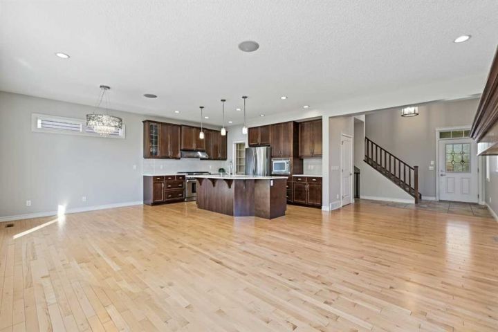 OPEN HOUSE SAT. NOV 15, 2-4 pm. When you DREAM, do you dream of pulling up to an ESTATE class home, with feature oozing opulence and upgrades, from it's exposed aggregate driveway, stucco, and rock? WELCOME home. The heart of the home, the kitchen, is the star of the main level, with it's spacious central island which allows for guests to easily gather around, oodles of cupboard and countertop, stainless steel appliances and walk-THROUGH pantry (w/ built-ins), and quartz countertops. The party gets to flow from the kitchen into the adjacent family/great room, or spill over, through the patio doors onto the rear deck (sun shade included), and down onto the west facing back yard, with irrigation system. Returning inside and going upstairs, you'll find an amazing floor plan, with the bonus room between the kid bedrooms and the HUGE decadent master, complete with ensuite featuring custom tiled shower and a soaker tub. The laundry is conveniently located on the top level. The BUILDER finished the "sunshine" basement, ensuring top and consistent quality; featuring a 3rd family area, 4th bathroom, and another bedroom. With schools as close as 250m (kindergarten to Grade 6 ; 5 total schools in Cranston), local shopping, including Sobey's, under 1/2 mile away, and with the South Campus Hospital plus more shopping just on the other side of Deerfoot, it's a challenge to find a better location. You can rest easy knowing you are a short 22 minutes to downtown, and when it's time to enjoy, only 35 minutes from Bragg Creek, and a short 4min walk from the limitless potential of the Bow Valley Pathway system. This home has it ALL. Great upgrades, amazing location with Bragg Creek / Bow Valley pathway / downtown, a fully BUILDER finished basement, and the ultimate yard. What more could you hope for? Call today for your private viewing.