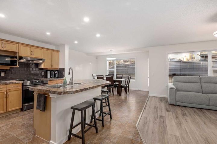 Welcome to this beautifully maintained 2-storey home in the family-friendly community of Evanston, perfectly situated on a quiet cul-de-sac just steps from schools, parks, and nearby shopping. Offering over 2,400 sq. ft. of developed living space, this home provides exceptional functionality for large or multi-generational families. The main floor features an inviting open layout with a bright living area, a well-appointed kitchen, and a dining space that opens to the backyard deck—ideal for entertaining or family barbecues. Upstairs, you’ll find four spacious bedrooms, including a primary suite with a private ensuite and lots of natural light. The fully developed basement adds even more flexibility with an additional bedroom, full bathroom, and a cozy rec room perfect for movie nights or game nights. Recent updates include a new roof, downspouts, and facia (2024), fresh paint throughout, and new deck boards (2024). Additional highlights include central A/C, a double attached garage that’s insulated, equipped with an electric heater and epoxy floors, and a large fenced yard with multiple storage sheds. Enjoy easy access to Stoney Trail and Deerfoot, nearby schools, and an abundance of shopping and amenities. This is a rare find with 4 bedrooms upstairs—a perfect fit for growing families seeking space, comfort, and convenience in one of Calgary’s most desirable northwest communities.