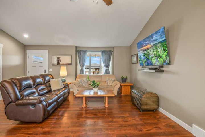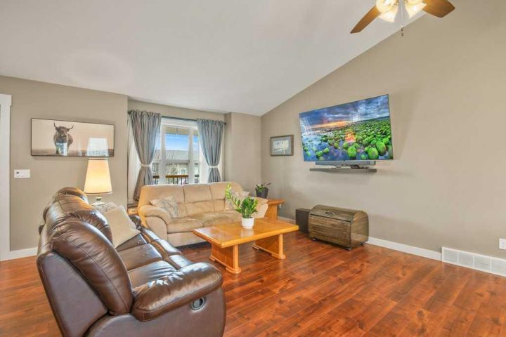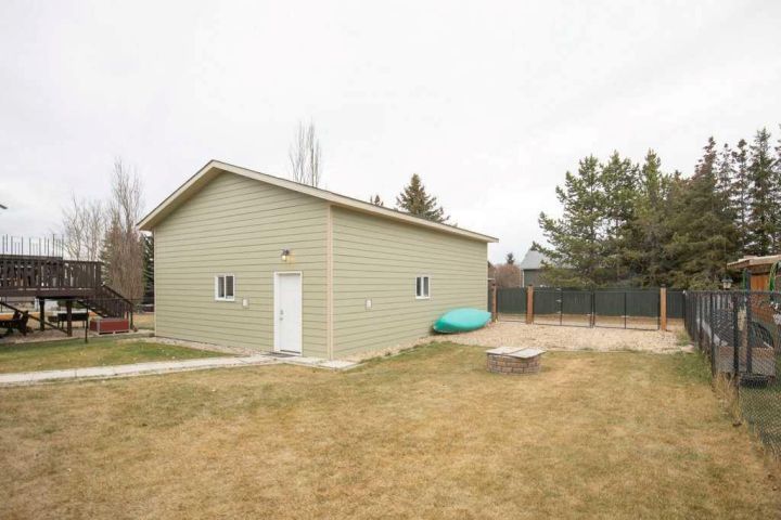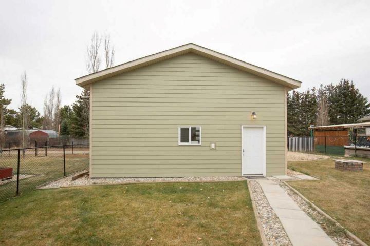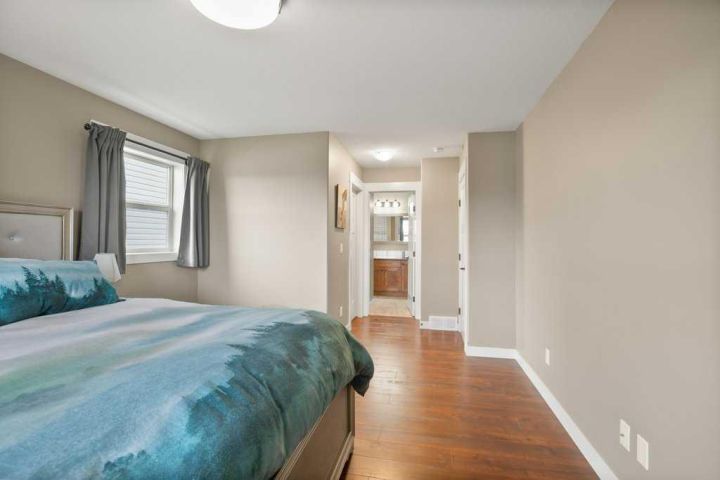 This family-friendly bungalow features 3 bedrooms and 2 bathrooms, offering 1,342 square feet of comfortable living space. The open-concept design boasts vaulted ceilings, warm hardwood floors sprawl throughout the main floor. Large windows that flood the home with natural light. The kitchen is equipped with ample cabinetry, a spacious island, and sleek appliances. The master suite is a private retreat with a 4-piece ensuite and a walk-in closet. Two additional bedrooms and another 4-piece bathroom complete the main level. The basement is an unfinished canvas with roughed-in in-floor heating, ready for your personal touch. Outside, enjoy the back deck overlooking a partially fenced, landscaped yard, and a newly completed detached garage with space for RV parking.