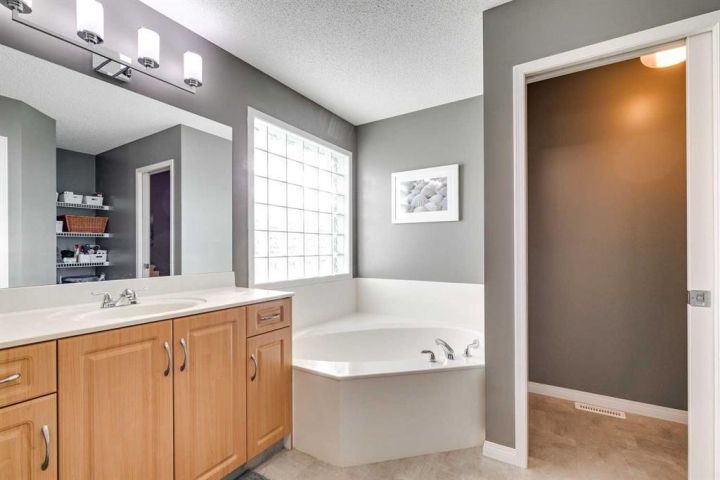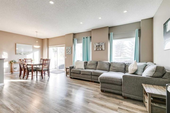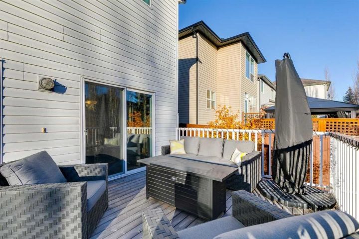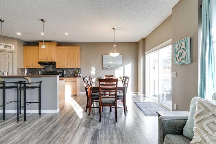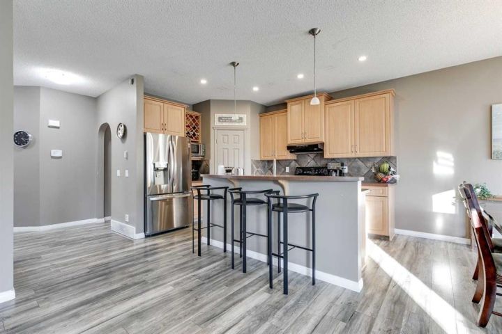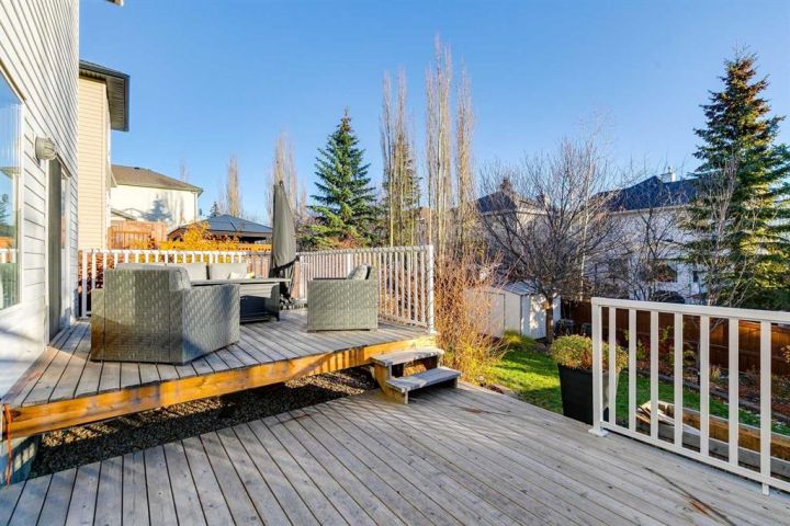 Welcome home to this charming, country-style family 2-storey in beautiful Rocky Ridge, where memories come alive and pride of ownership shines throughout. With over 2,700 sq.ft. of developed living space, this move-in ready home offers 3 bedrooms up + 1 down and is ready just in time for the holidays! The main level features easy-care laminate flooring throughout, a bright and functional chef’s kitchen with breakfast bar island and corner pantry, and a cozy living room with gas fireplace — perfect for family gatherings. The dining area opens to a two-tiered south-facing deck, ideal for entertaining or relaxing on warm evenings. Upstairs, the spacious primary retreat easily fits a king bed and includes a spa-inspired ensuite with soaker tub, separate shower, and walk-in closet. Two additional bedrooms, a full 4-pc bath, upper laundry, and a flex/den space complete the level. The fully finished basement adds a 4th bedroom, 3-pc bath, and large recreation room for movie or game nights. This home comes equipped with air conditioning and underground sprinklers, along with numerous updates: new washer and dryer, new fridge, 4 newer windows, hot water tank (2020), roof (2019), and an updated deck. The beautifully landscaped south-facing backyard offers mature trees for privacy, while the front porch and tranquil pond feature create a peaceful spot for your morning coffee. Ideally located in family-friendly Rocky Ridge, you’re close to parks, playgrounds, top-rated schools, the Shane Homes YMCA, C-Train station, shopping, and restaurants. Enjoy an easy 30-minute commute to downtown or a quick weekend escape with the mountains less than an hour away. This is the Rocky Ridge family gem you’ve been waiting for, full of charm, beautifully cared for, and ready to move in before Christmas! Call your favourite Realtor today and book your private showing.