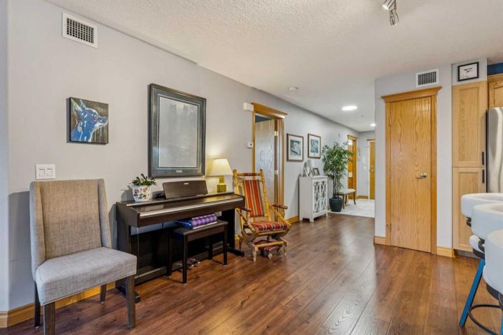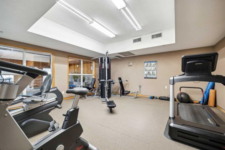 Beautifully upgraded two bedroom, two full bathroom single level lifestyle condo in popular 55+complex of Sierra's of Heritage. Awesome central location. One condo fee includes all utilities. Two assigned underground parking stalls. Storage unit attached to P1 stall. Quality Stainless Steel kitchen appliances. Luxury vinyl waterproof flooring in bathrooms and entrance. Waterproof luxury laminate flooring in living room, kitchen and dining areas. Custom blinds. Air conditioning. Gas fireplace. West facing spacious balcony with gas BBQ outlet. LG washer dryer. Newer carpets in both bedrooms. Recessed lightning in kitchen, newer light fixtures in guest bedroom, front hall and kitchen. Ceiling fan in Master bedroom with walk in closet and 3pce ensuite. Extra large smart diagnosis agitator free washing machine & smart diagnosis dryer in dedicated laundry room. Glass top stove with modern features like Air Fryer convection oven, bake, roast, bread proof and more settings! Oven has both Steam and self clean settings. Two door fridge with separate water door, bottom freezer, auto ice and water line. This unit is close to the elevator for easy access. Fabulous Amenities: secure entry doors to building and underground parking stalls, car wash, wood working shop, hot spot, bicycle racks, exercise room, indoor swimming pool, hot tub, snooker table and two other pool tables, shuffle board, media room with large TV system and hundreds of movies, DVDS & VHS, craft room, common area bathrooms, banquet room, 2 guest suites on each floor, 4 elevators, outdoor courtyard with firepit, plus 15 access to Heritage Square, walking distance to major grocery stores, Heritage LRT, and numerous restaurants and more! Minutes from Rocky View Hospital, Police Station, and centrally located in great community of Acadia. This condo complex is well run and brings more than just a safe place to live, it offers a lifestyle that you can enjoy with all the amenities and social activities available if you choose to be part of. Great value here. Easy to view with reasonable notice.