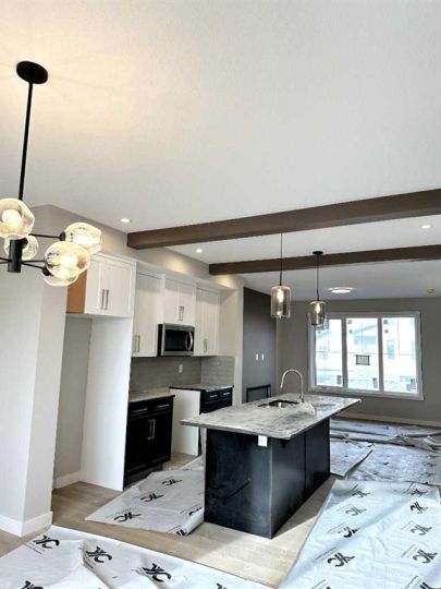 Celebrate the Season in Waterford – Limited $15,000 Developer Savings Included. Welcome to The Fernie 2 by Douglas Homes — a beautifully designed, move-in-ready two-storey home located at 299 Waterford Heights in the vibrant community of Waterford, Chestermere. This 1,418 sq. ft. home features 3 bedrooms, 2.5 bathrooms, and a rear concrete parking pad. Enjoy the bright, open layout with 9’ ceilings, engineered hardwood floors, and 8’ doors on the main level. The spacious great room includes a sleek electric fireplace, while the modern kitchen is equipped with quartz countertops and stainless steel appliances. Extra side windows fill the home with natural light, creating a warm and inviting atmosphere. Upstairs, the primary suite offers a large walk-in closet and a private ensuite. You’ll also find a convenient upper-floor laundry, two additional bedrooms, and a full bath. This home also includes a separate side entry for future basement development and is ideally located close to parks, schools, and local amenities in a growing family community. Ask about the First-Time Home Buyers’ GST Rebate! Eligible buyers may qualify for up to $50,000 in savings (conditions apply; see CRA eligibility rules). Photos are of a show home for illustration purposes; actual finishes and colors may vary.